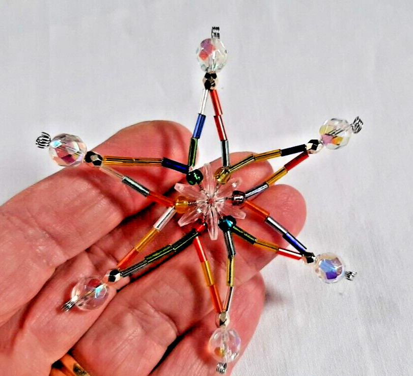 • CZECH BEAD SNOWFLAKE CHRISTMAS ORNAMENT MULTICOLOR 13