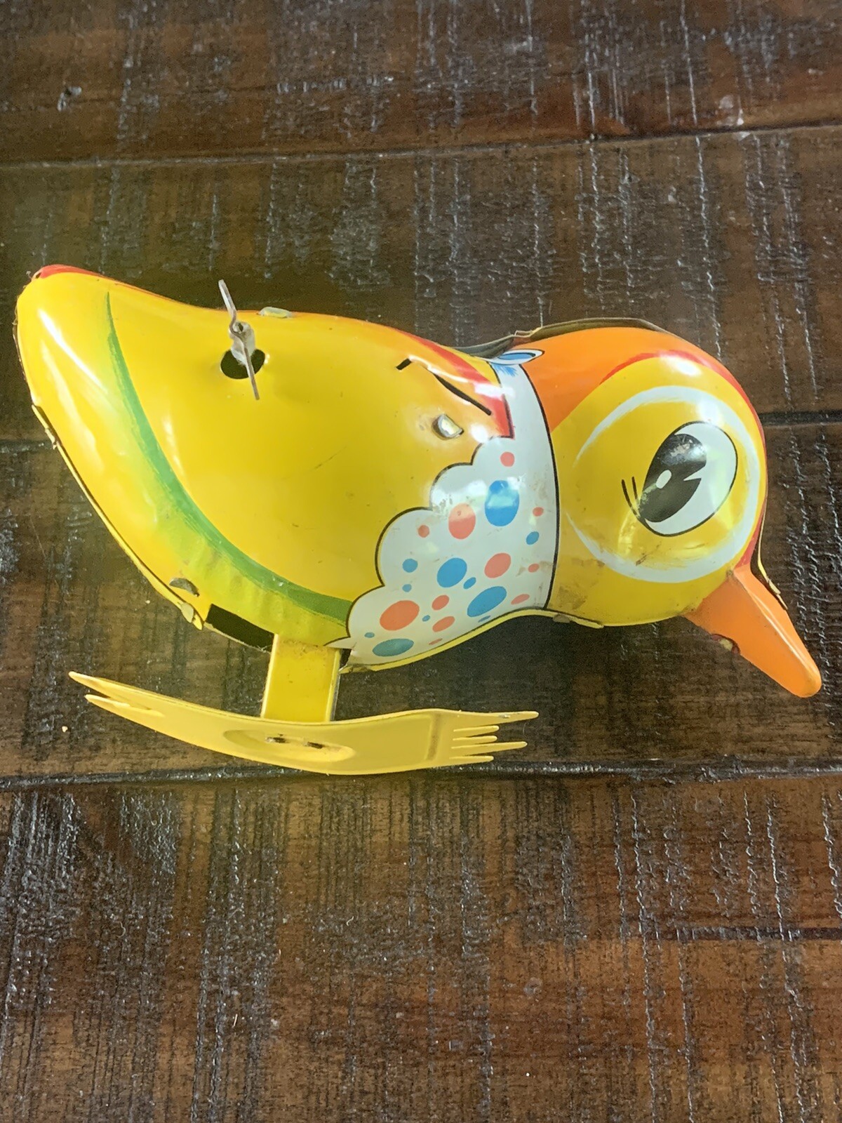 Vintage 1950'S TPS TIN LITHO MECHANICAL WIND UP colorful pecking Bird