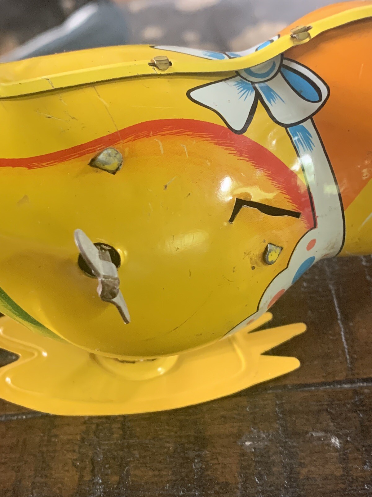 как выглядит Vintage 1950S TPS TIN LITHO MECHANICAL WIND UP colorful pecking Bird фото