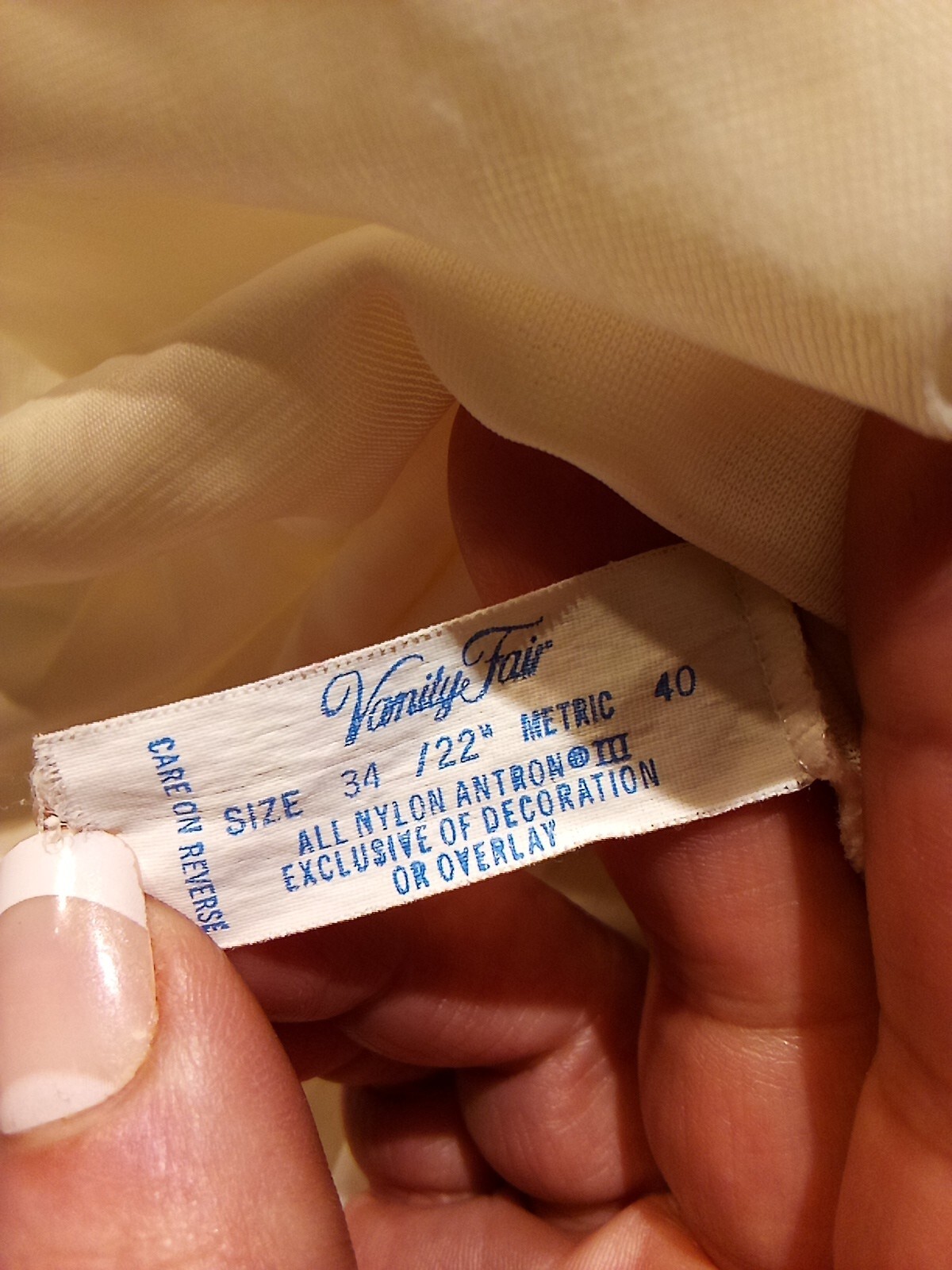 как выглядит Vtg Vanity Fair Babydoll Slip Dress Womens Size 34 40" Champagne Lace Sheer фото