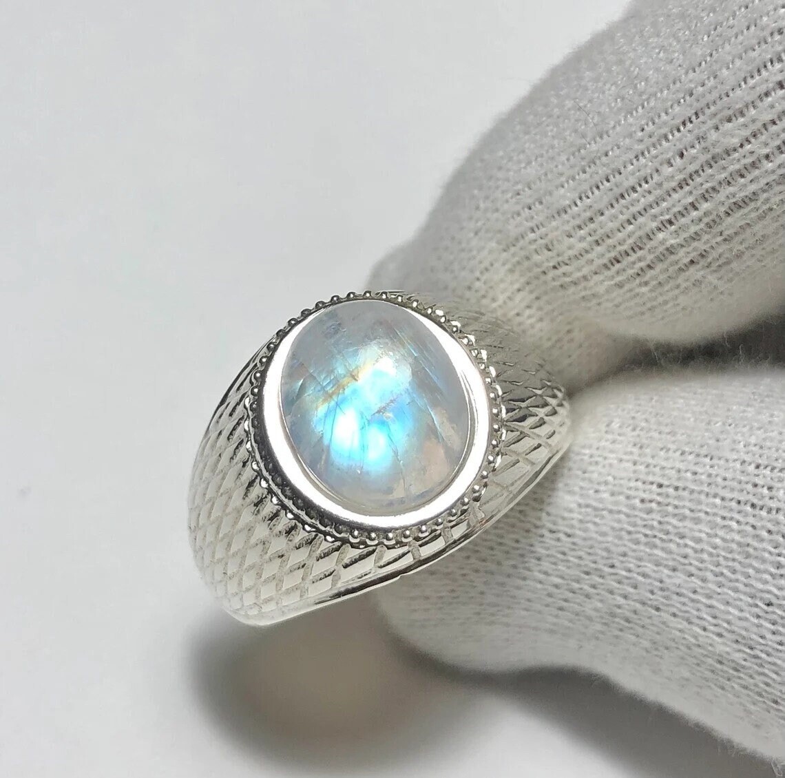 как выглядит 925 STERLING SILVER NATURAL Rainbow moonstone ring, engagement ring, jewelry фото