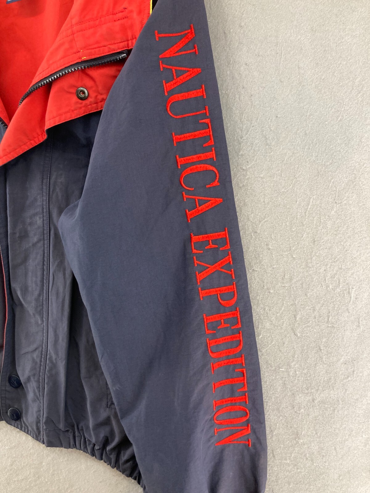 Nautica YOUTH Jacket XL Blue Windbreaker Hooded Lined Expedition Vintage