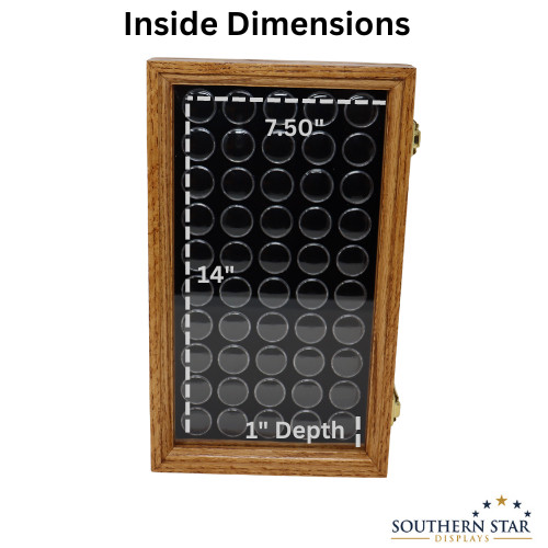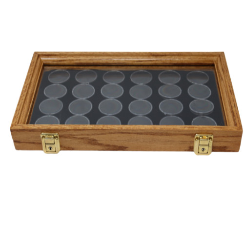 Oak Glass Top Display Case 16 x 9 x 2 for Coins, Gemstones 24 36 50 Cup Sizes