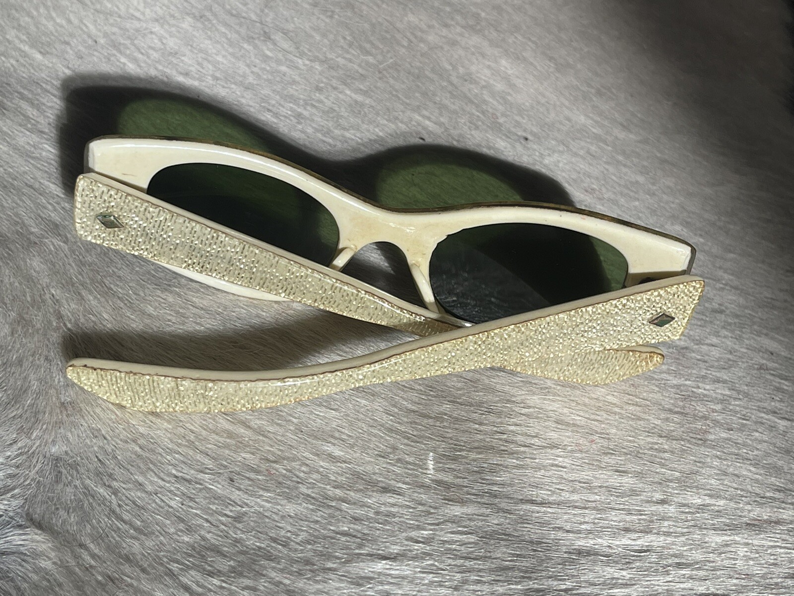 как выглядит Vintage 50s Glitter Cat Eye Sunglasses Unisex фото