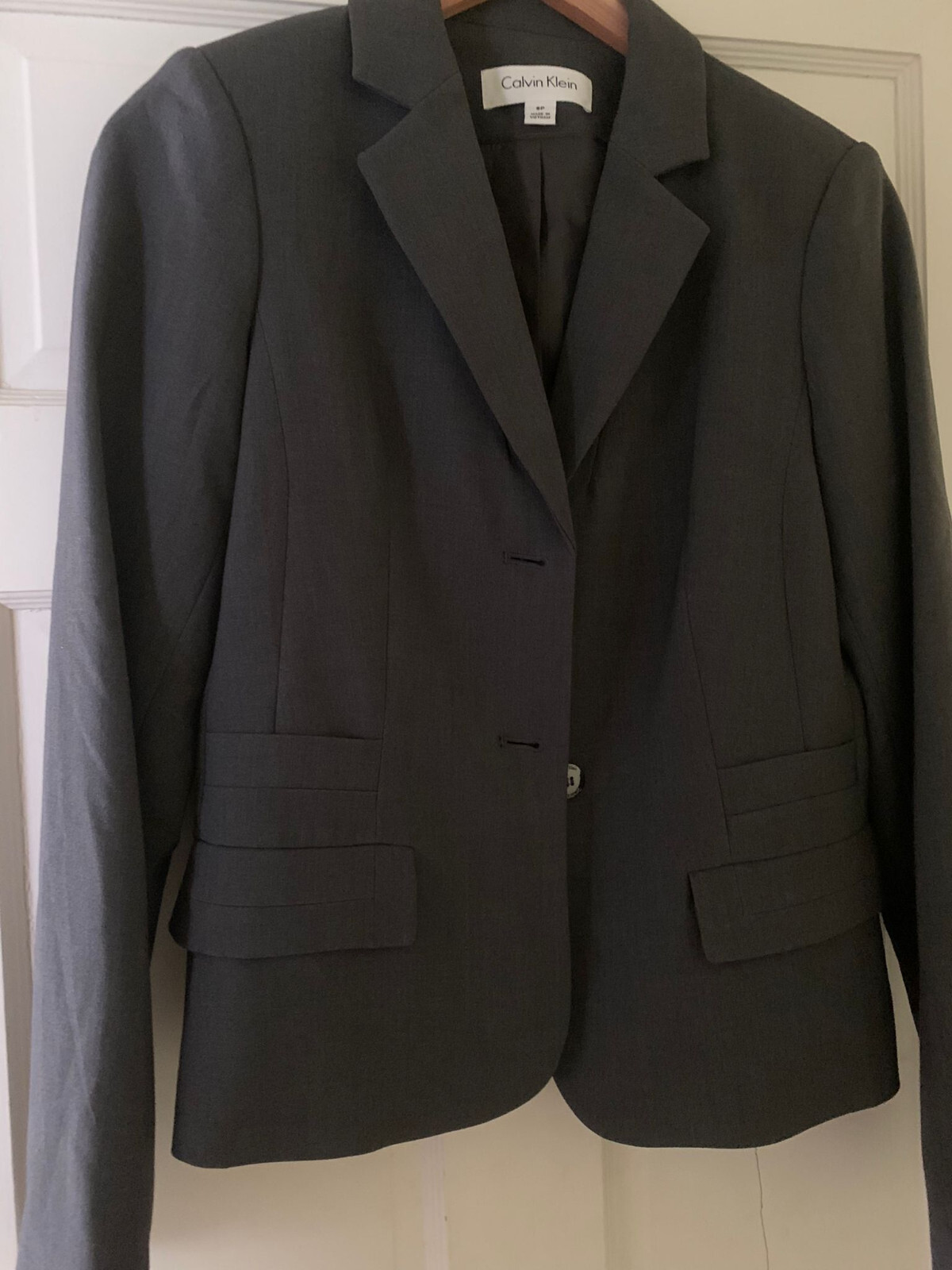 как выглядит Calvin Klein Gray Grey Blazer Womens Size 8P Petite Button Career Work Jacket фото
