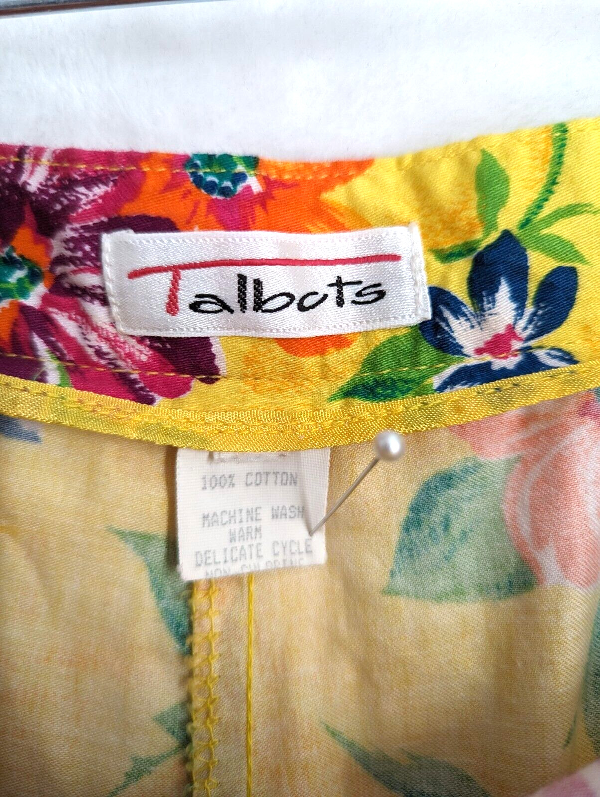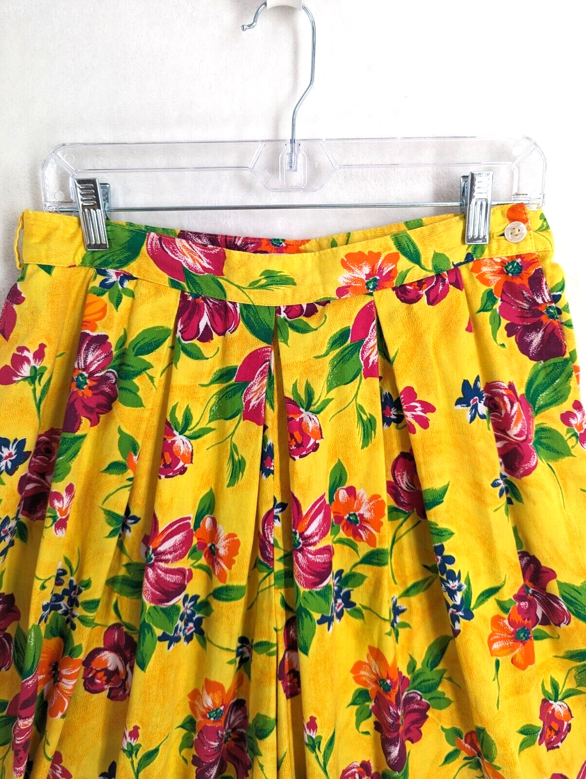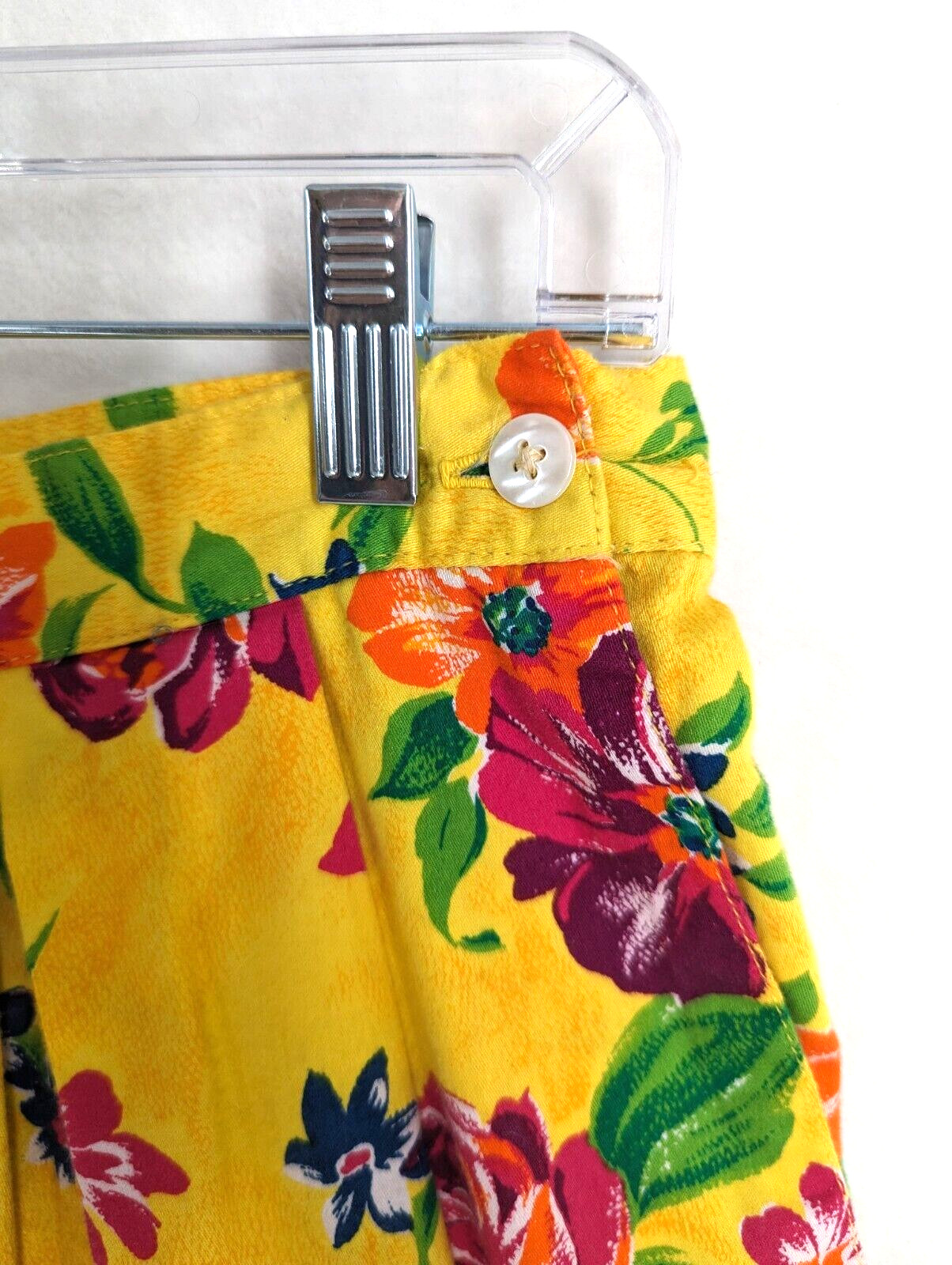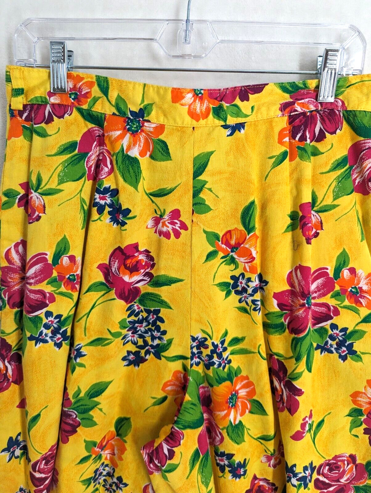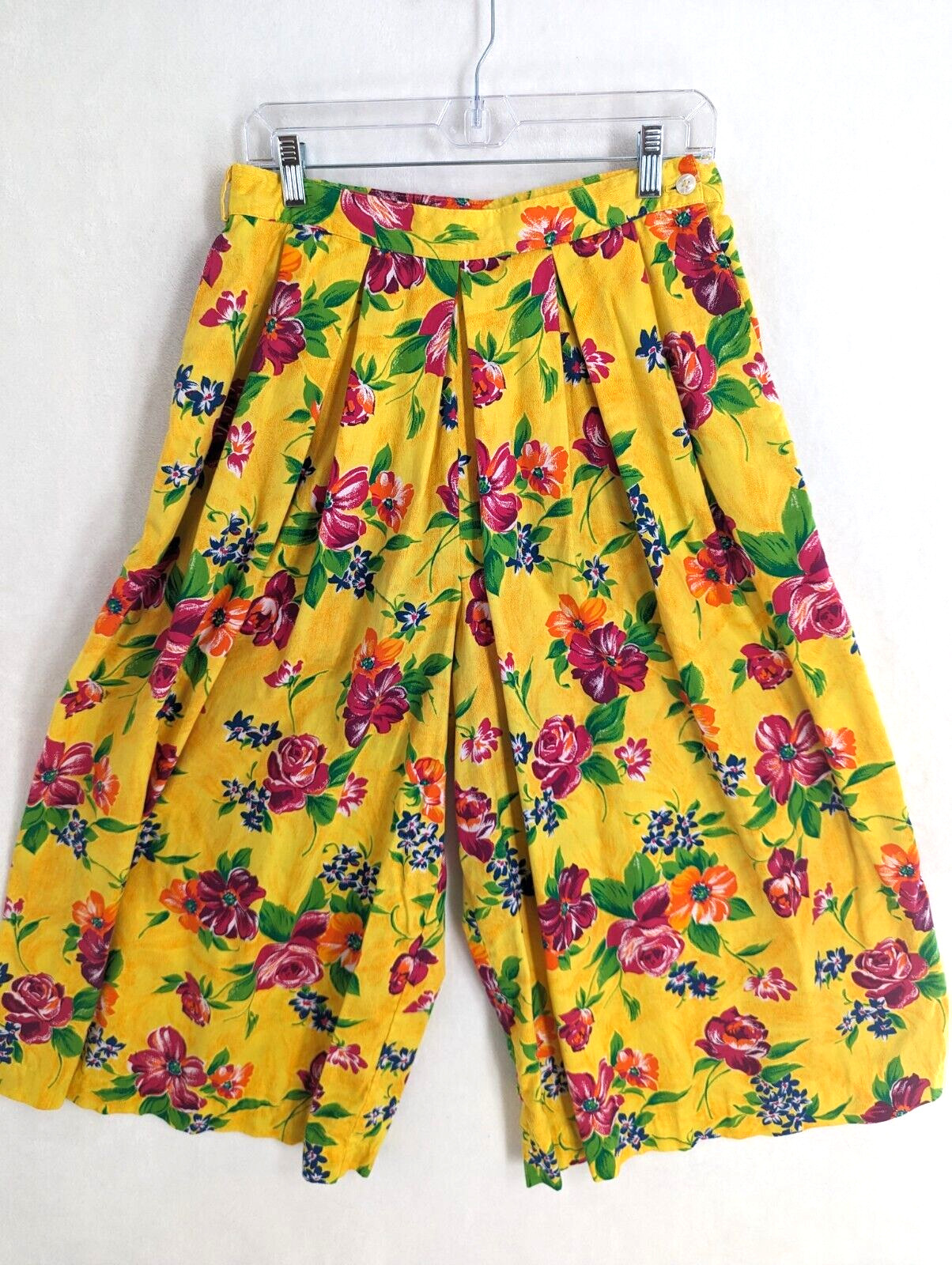 Talbots vintage women's yellow floral cotton gaucho pants/ split skirt pockets
