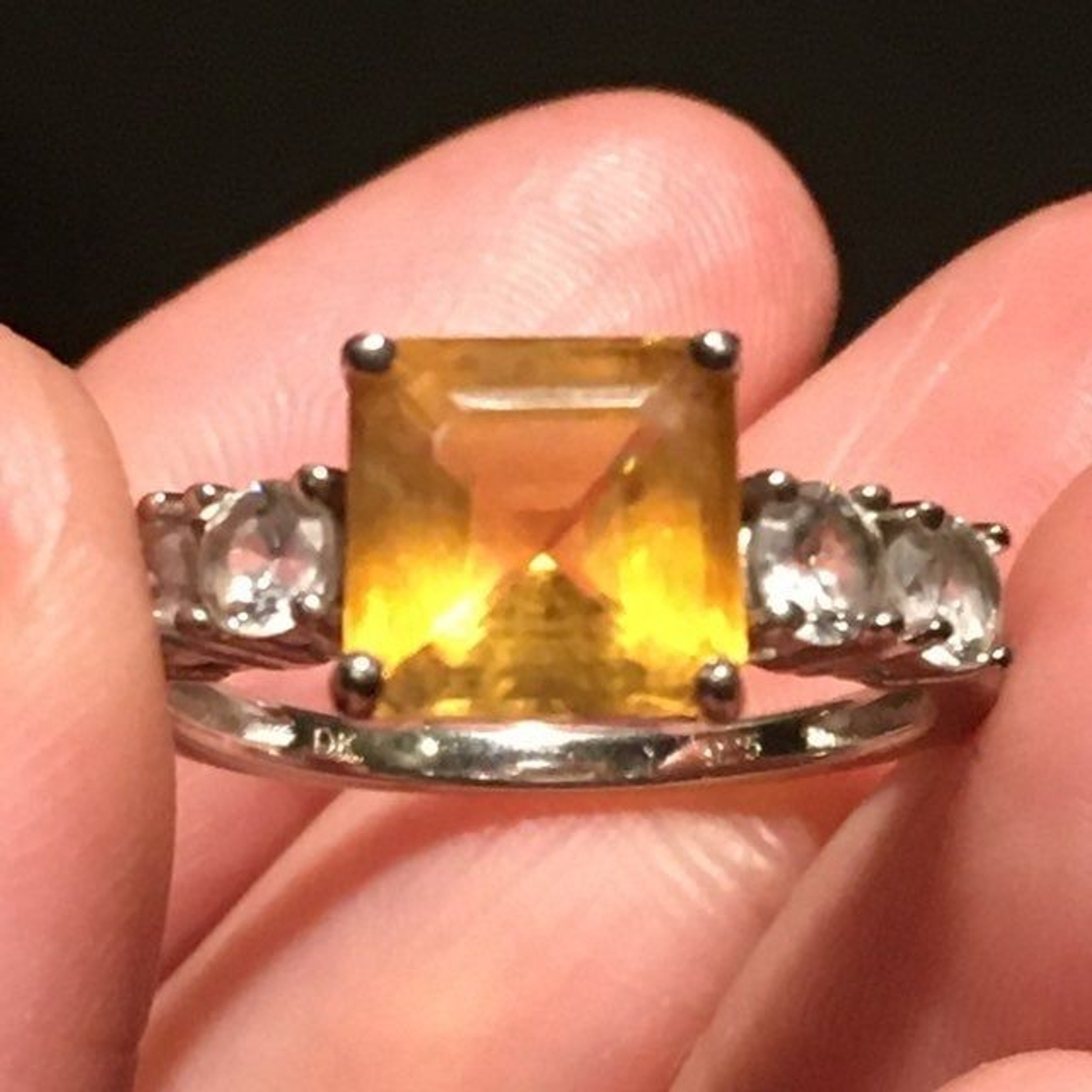 DK 925 Sterling Silver natural citrine white topaz Ring size7