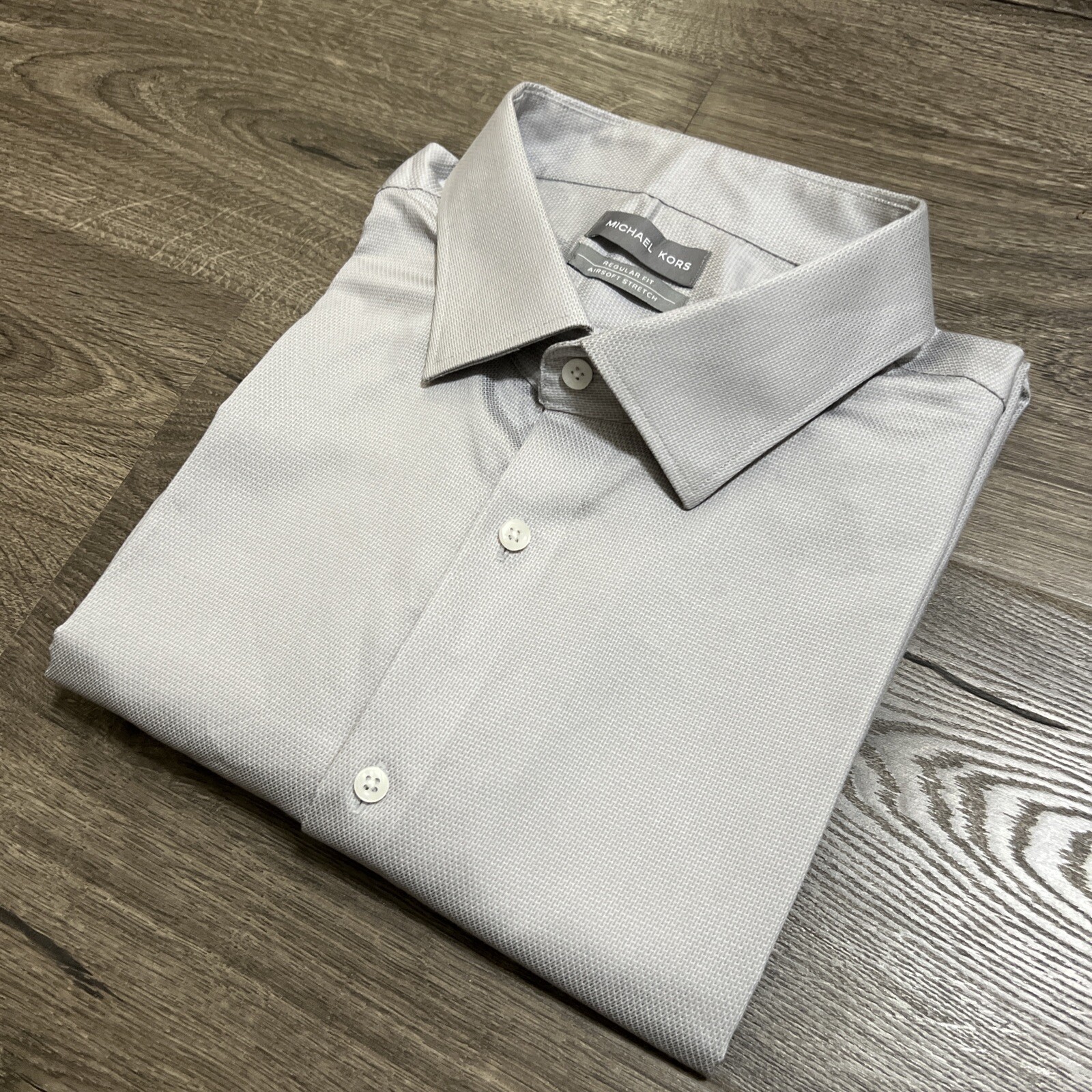 как выглядит Michael Kors Mens Regular Fit Airsoft Non-Iron Performance Dress Shirt Grey B4HP фото