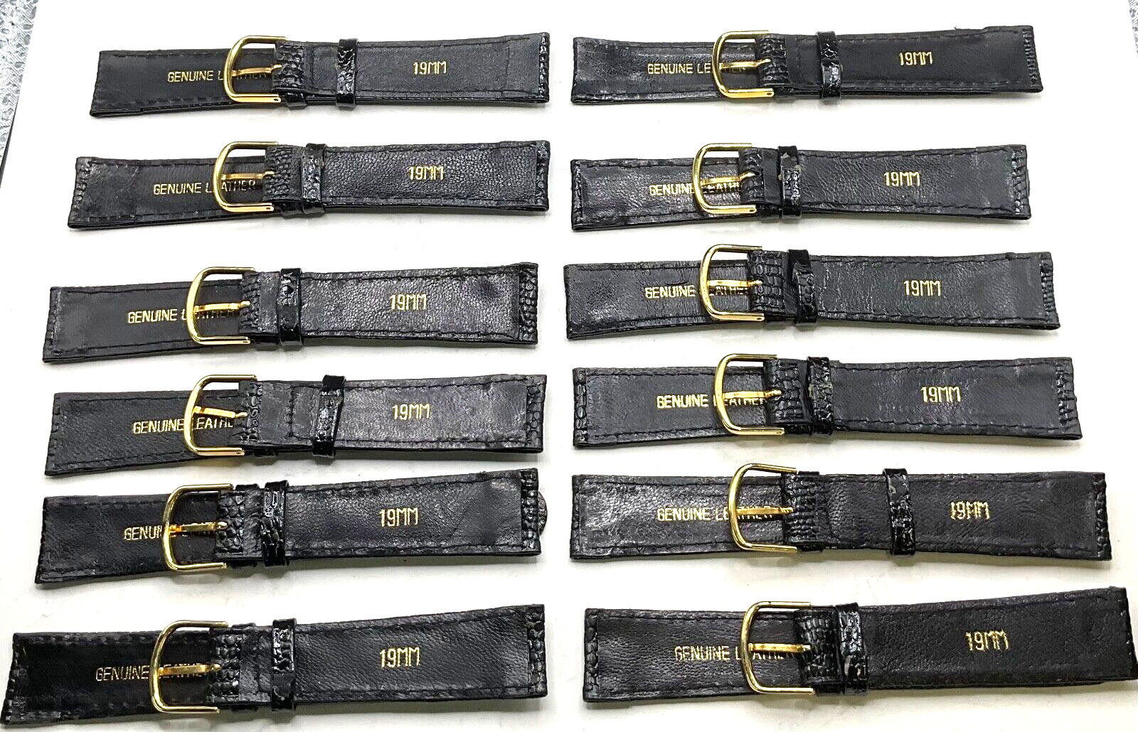 Brand New 12 Pcs. Black CROC Grain Genuine Leather 19mm 3/4 Watch Straps