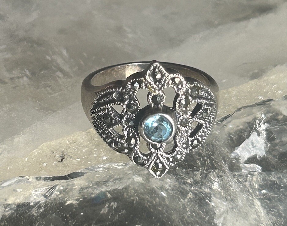 Sterling Silver Marcasite Blue Topaz Ring SZ 7