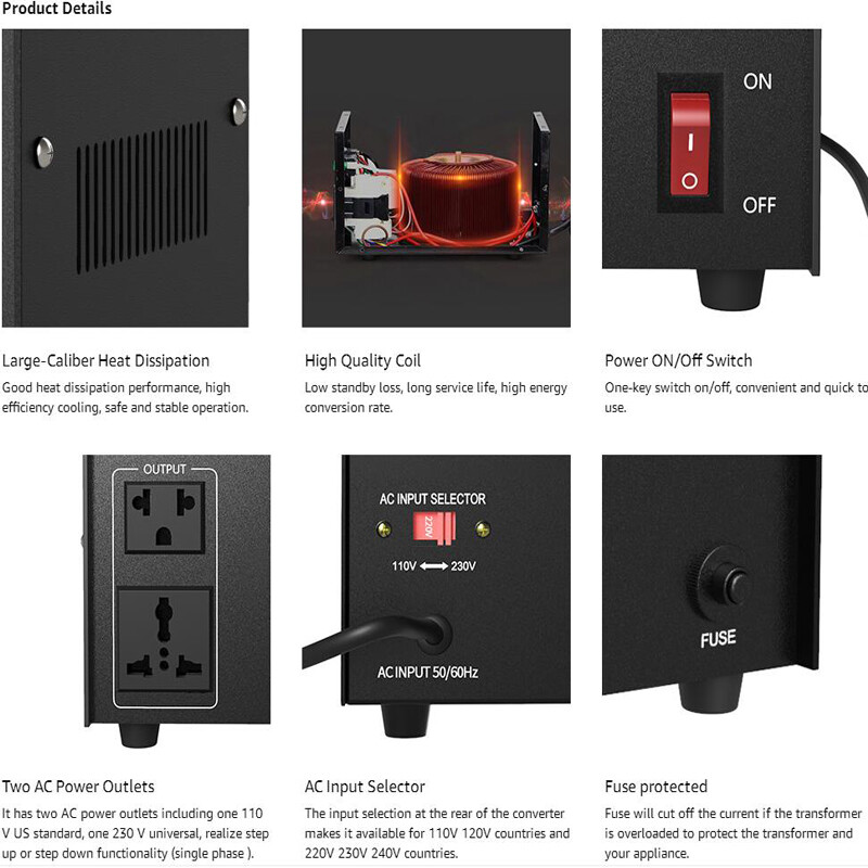 500 Watt Durable Voltage Converter Transformer 110V to 220V/220V to 110V Up Down