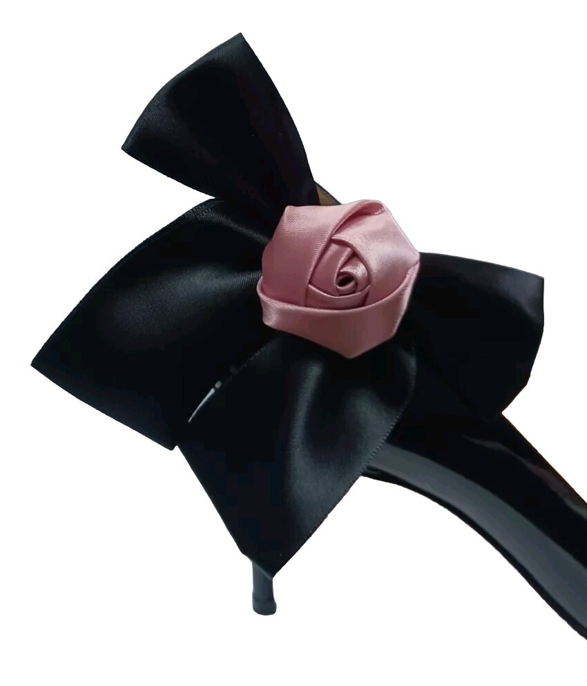 Flower with Bow Clips for Shoes, Shoe Accessories, Color: Black, Blush, 2pcs