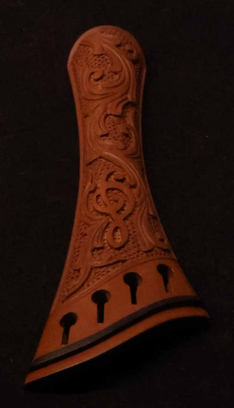 как выглядит Handmade Carved Boxwood violin tailpiece 4/4 Harp Mod Treble Clef design 56 фото