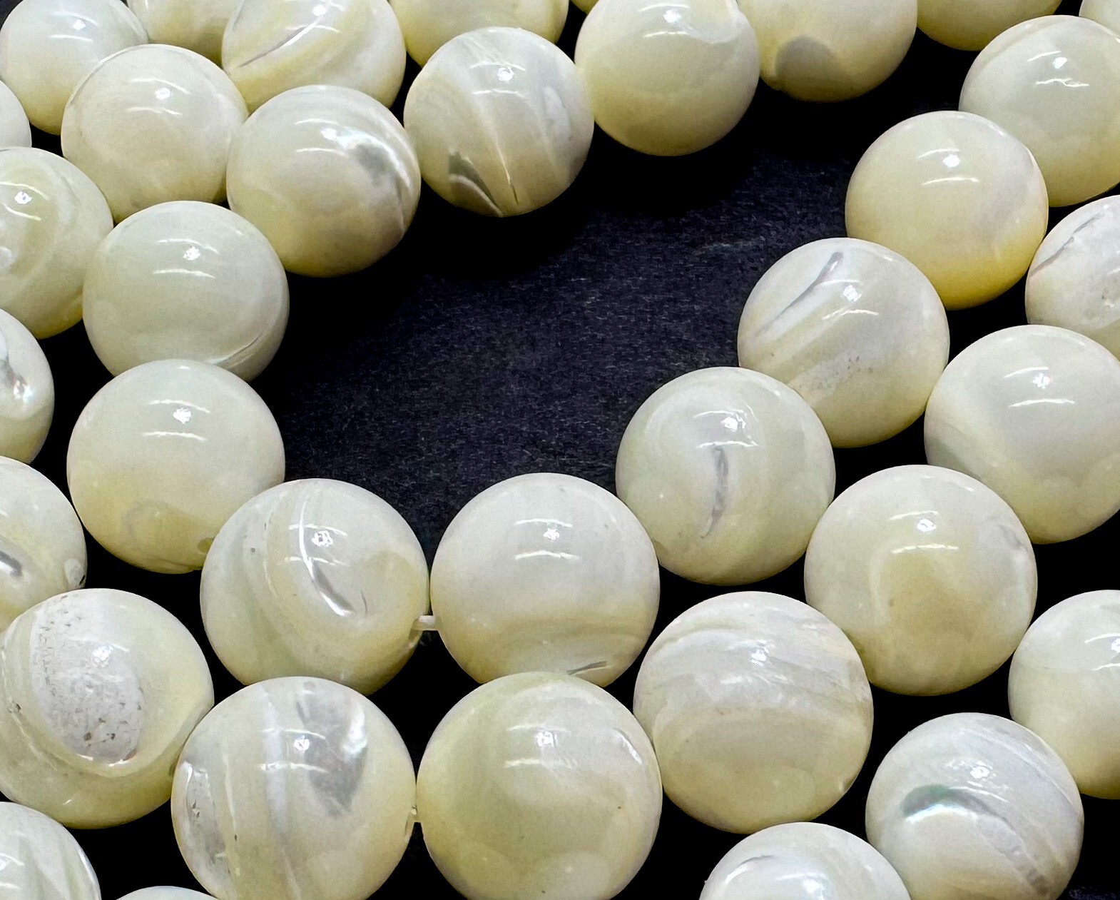 AAA Iridescent White Mother of Pearl MOP Shell Smooth Polished Round Beads RN13