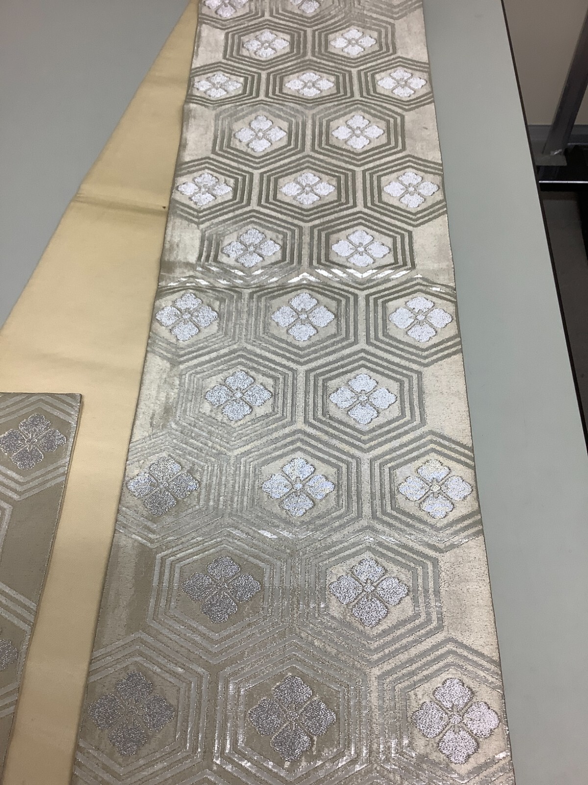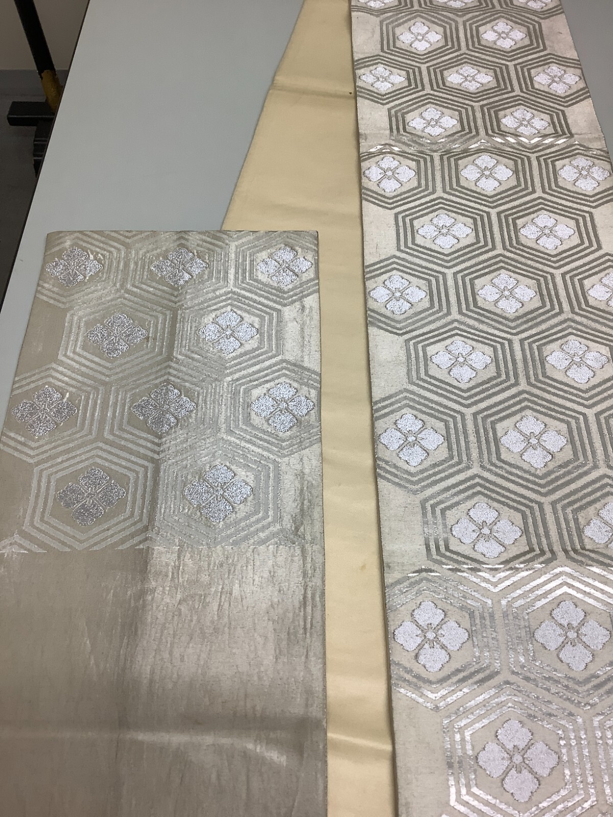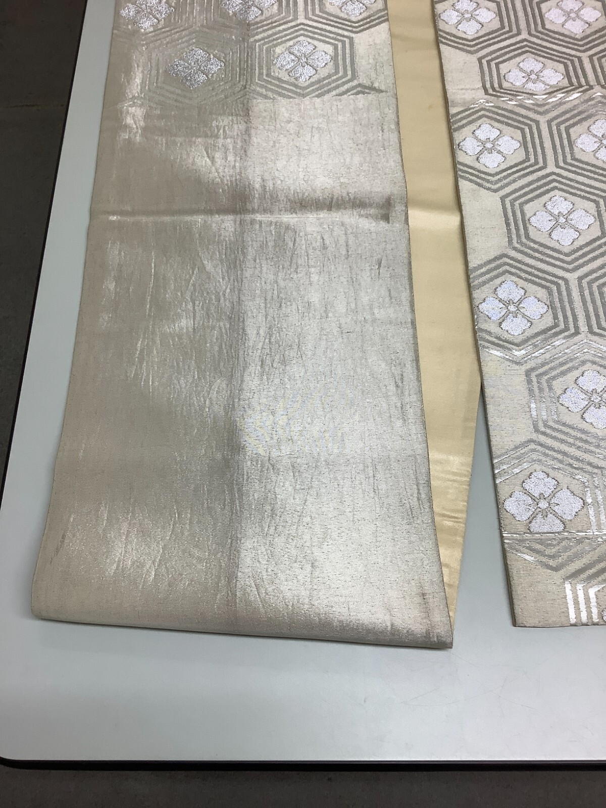 как выглядит Japanese Vintage Kimono Fukuro Obi pure silk silver tradition expensive 154x11in фото