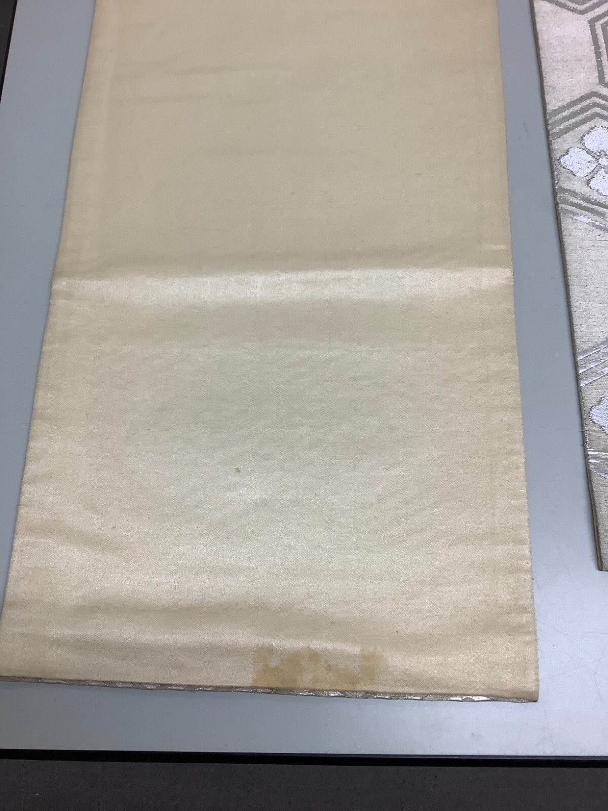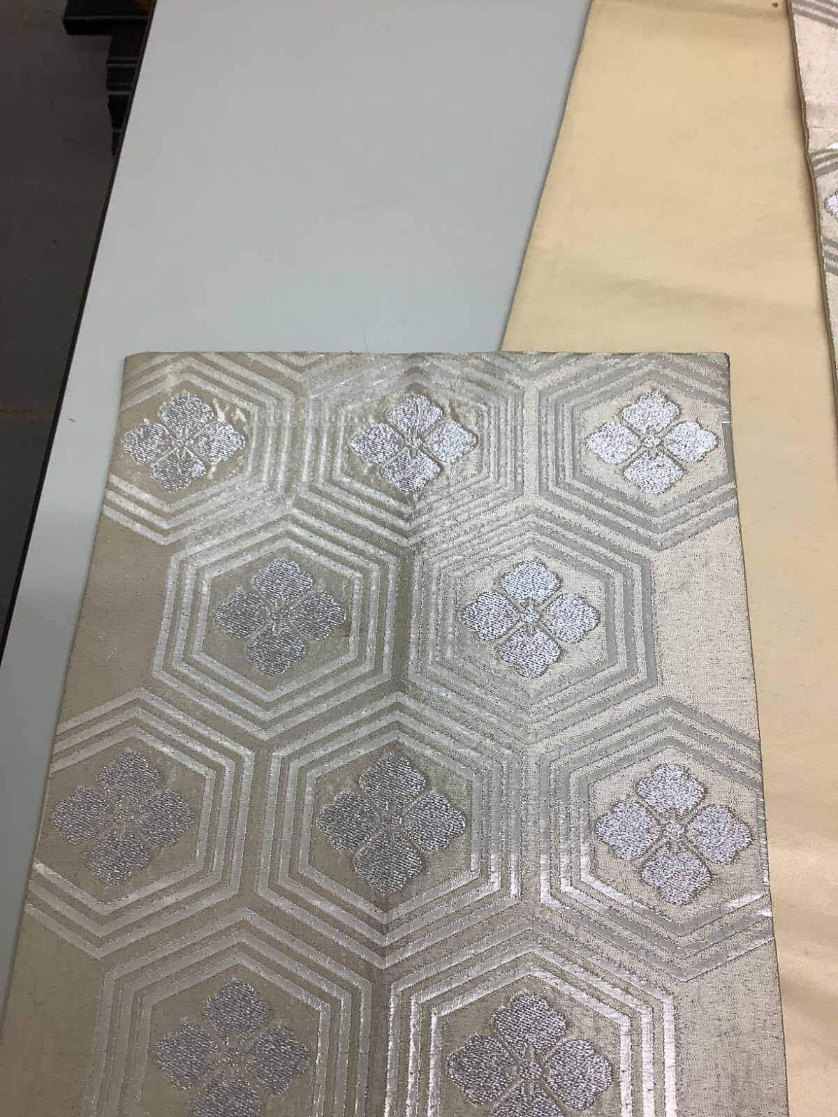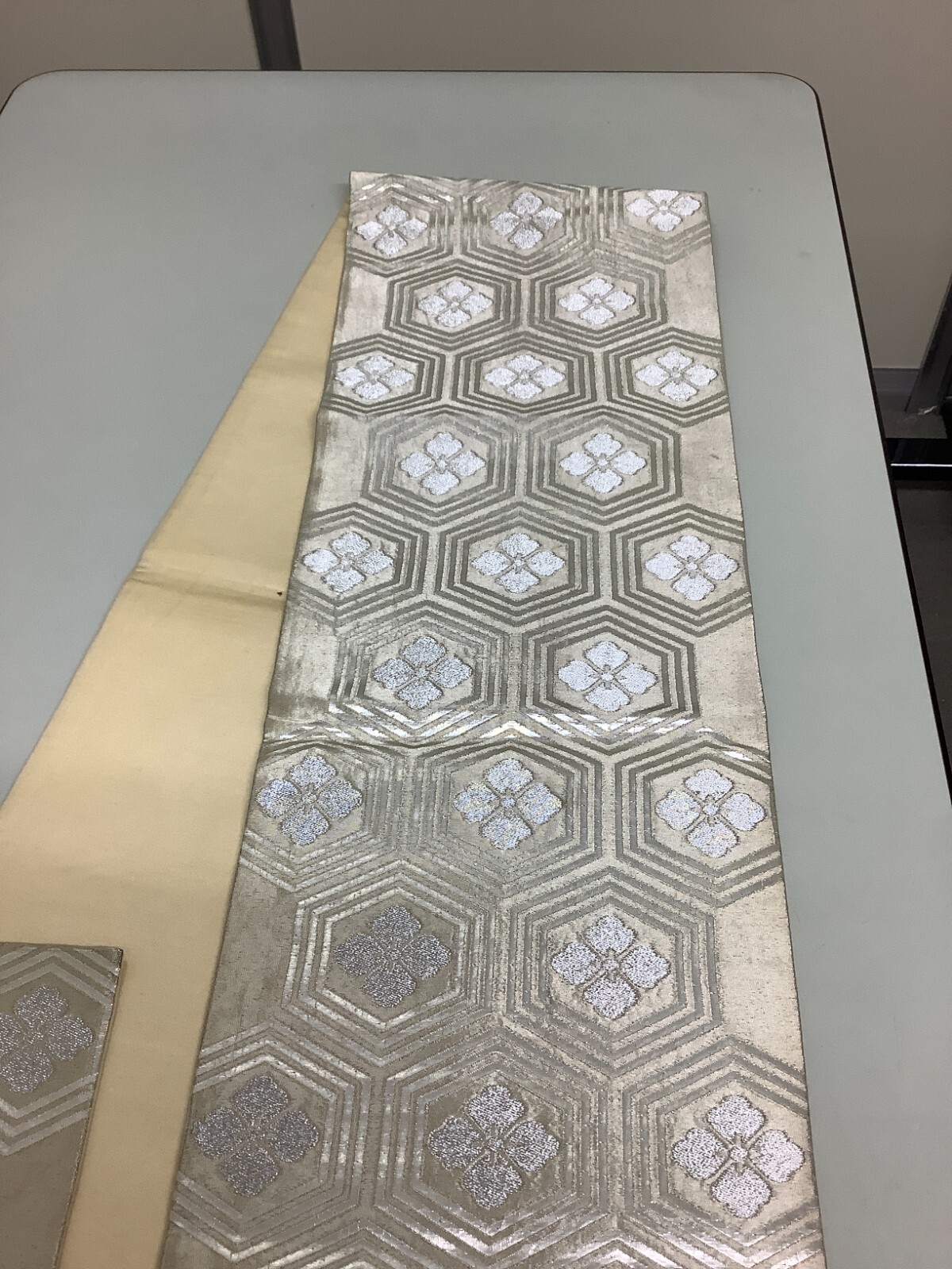 как выглядит Japanese Vintage Kimono Fukuro Obi pure silk silver tradition expensive 154x11in фото
