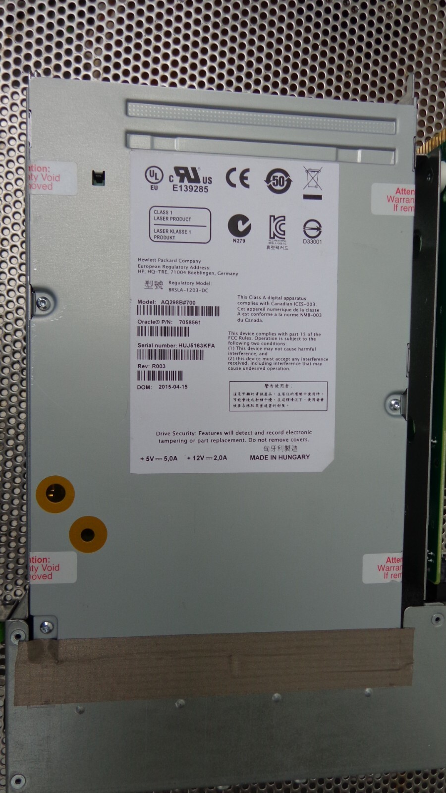 HP Oracle 7058561 LTO6 HH FC Tape Drive AQ298B 700 7057060