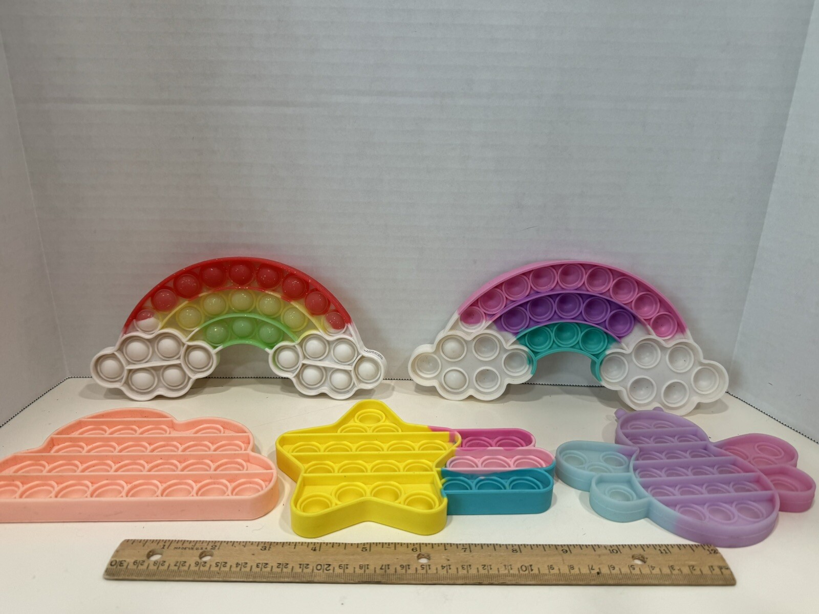 Sensory Tactile Pop It Fidget Toy Lot of 5 Rainbows, Cloud, Star, Bee