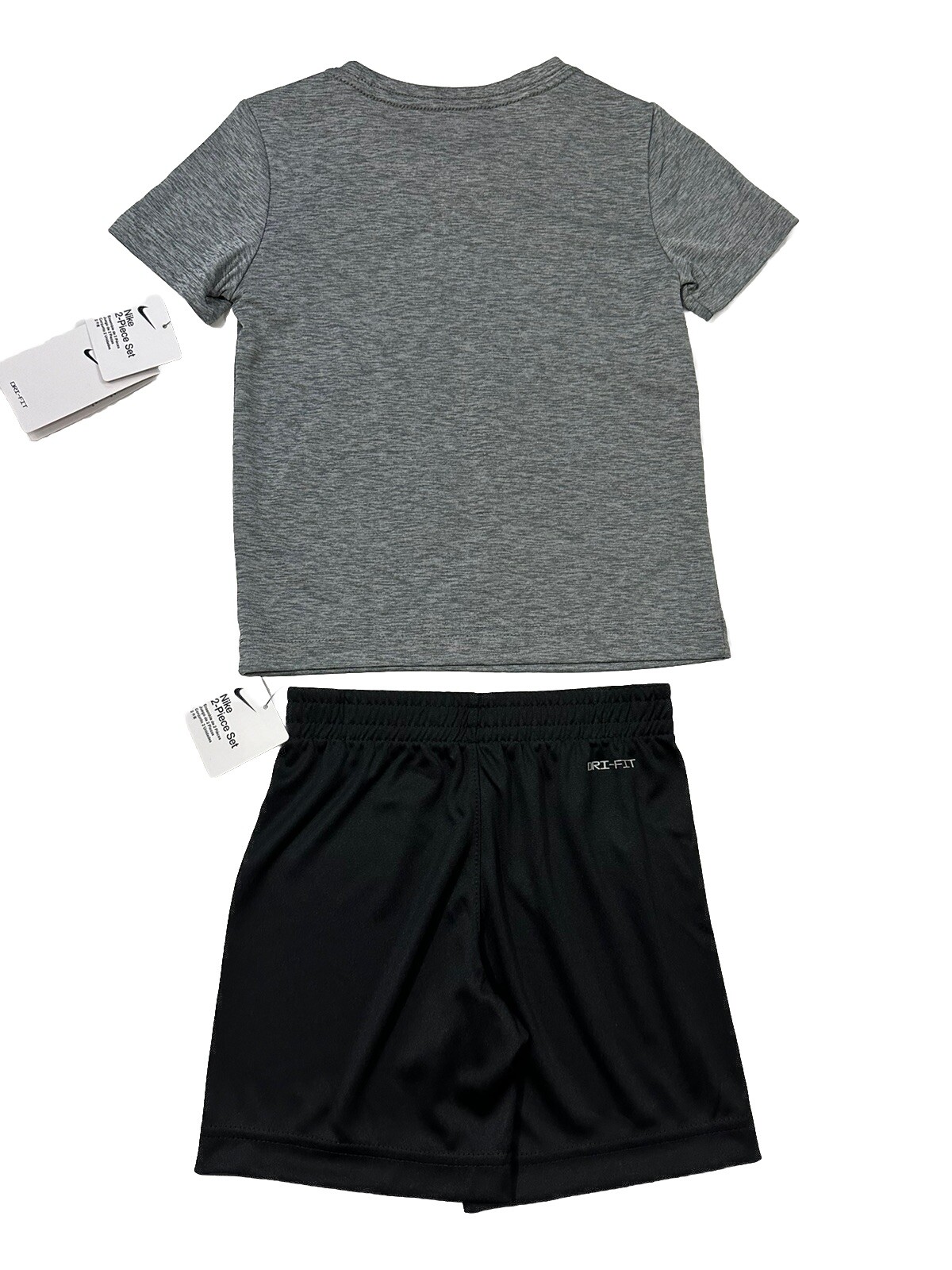 Nike NWT Boys Size 4 Gray T Shirt Black Shorts Red Logo 2 Piece Set Outfit
