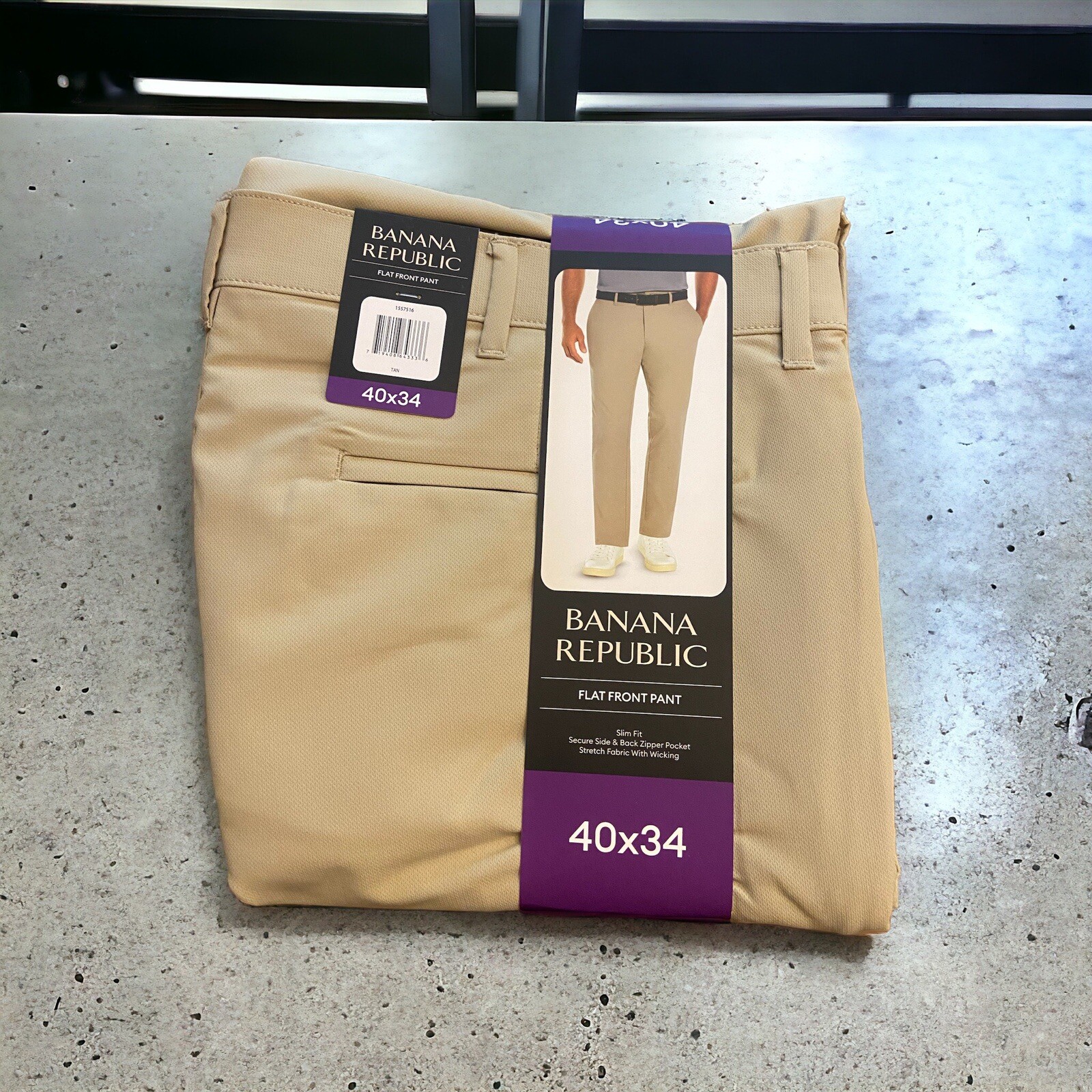 как выглядит Banana Republic Mens Flat Front Pant Slim Fit Stretch Fabric Tan NEW 40 X 34 фото