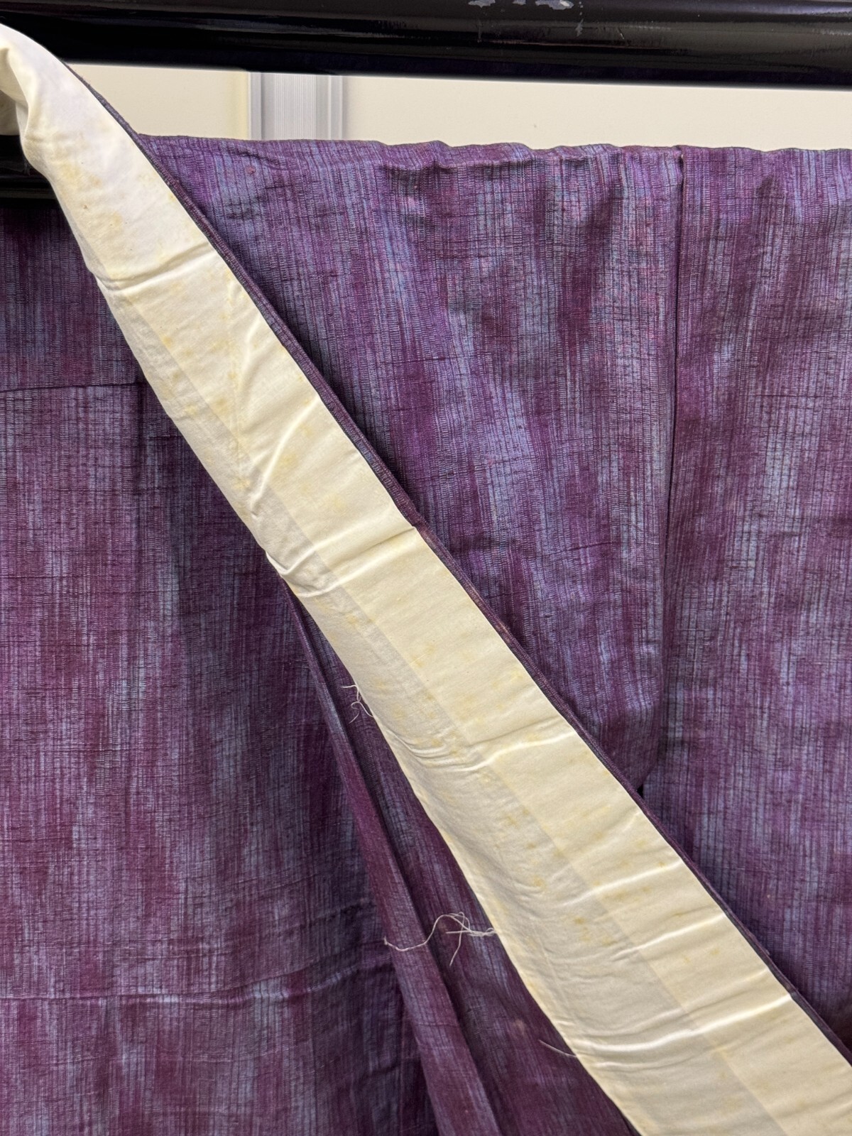 как выглядит Japanese Vintage Kimono Pure Silk purple Expensive tsumugi dirt Height 61.02in фото
