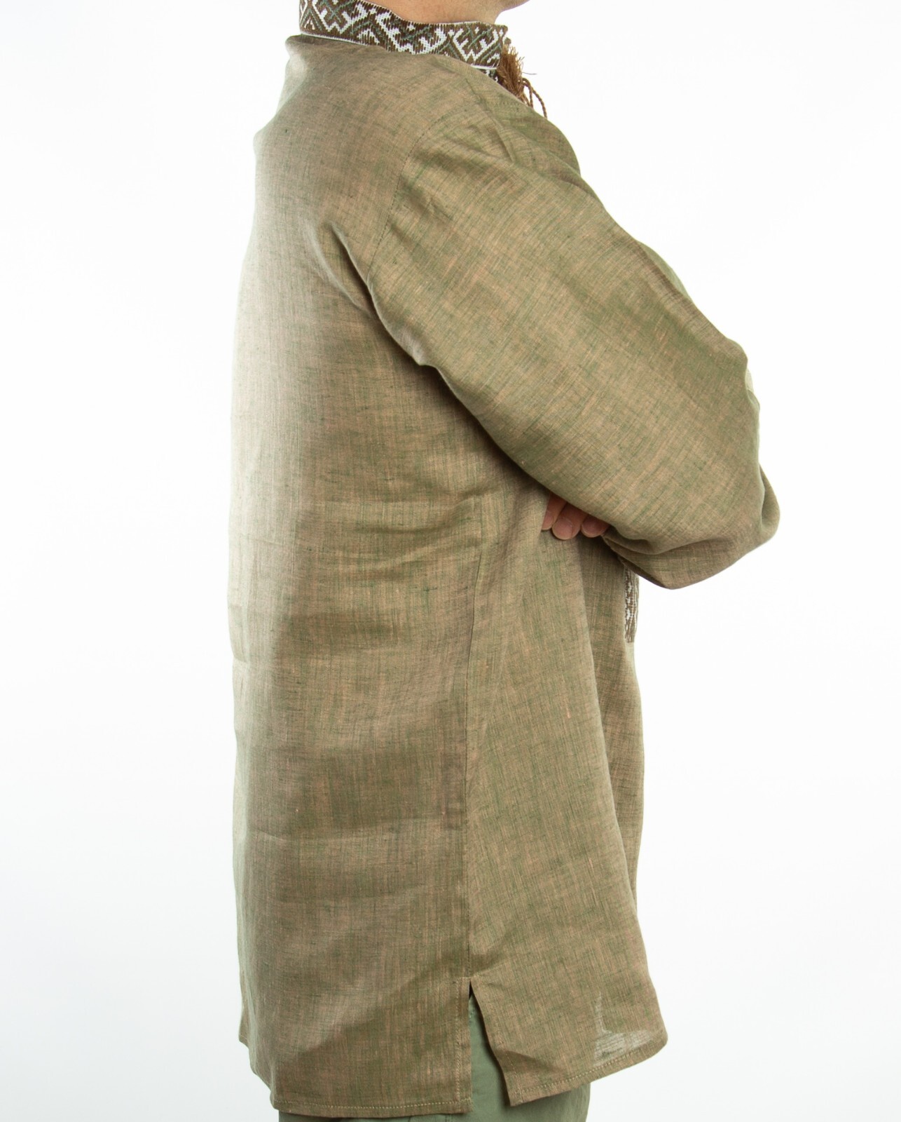 Military Vyshyvanka Mens Ukraine hand Embroidery LINEN khaky beige Satin stitch