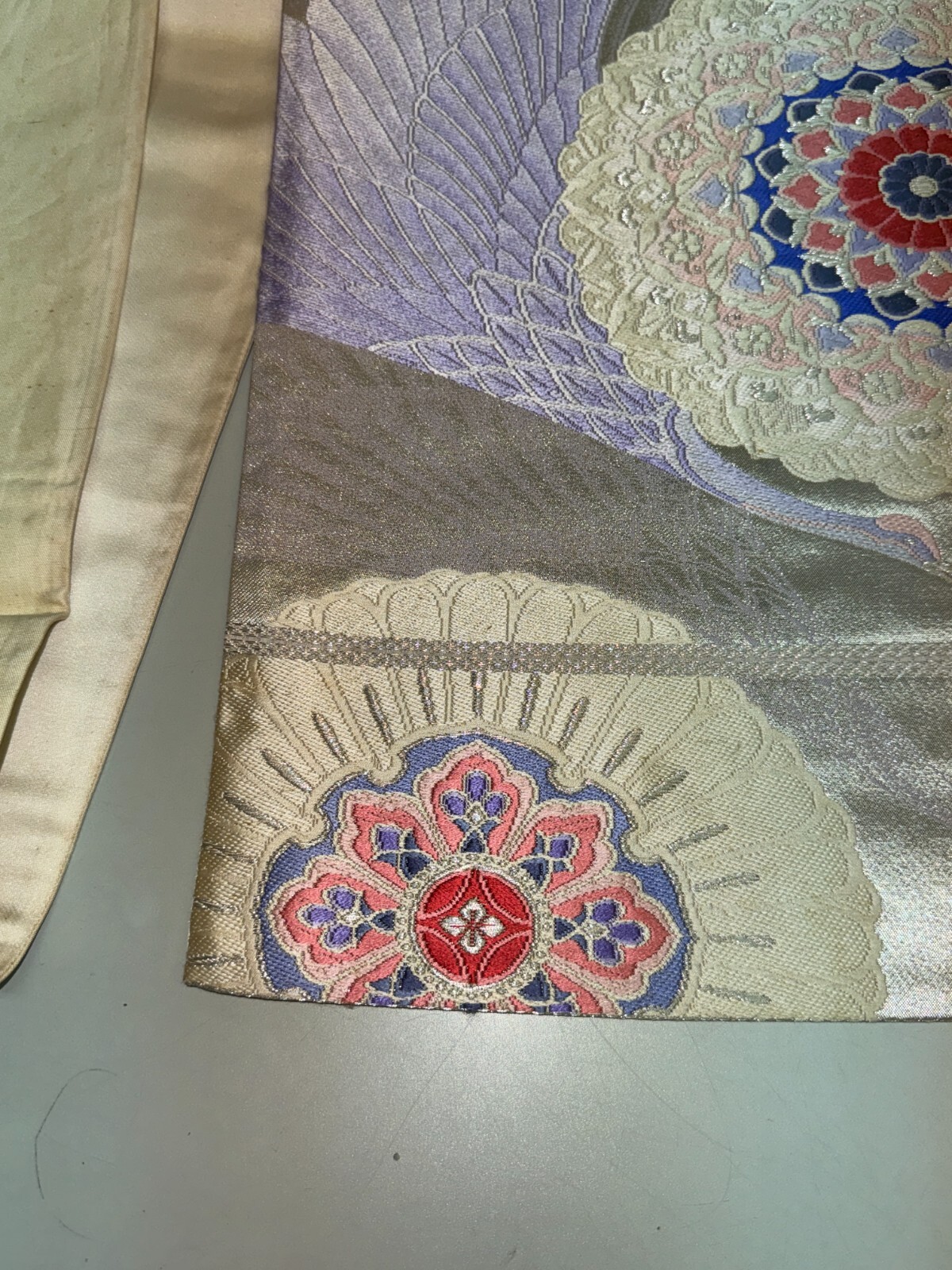 Japanese Vintage Kimono Fukuro Obi silk Silver expensive Embroidery Dirt165x11in