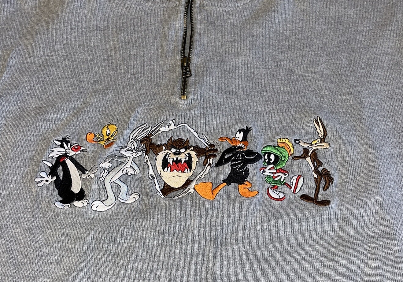 Vintage 1998 Looney Tunes Pullover Sweatshirt Warner Bros. XXL Grey 1/4th Zip
