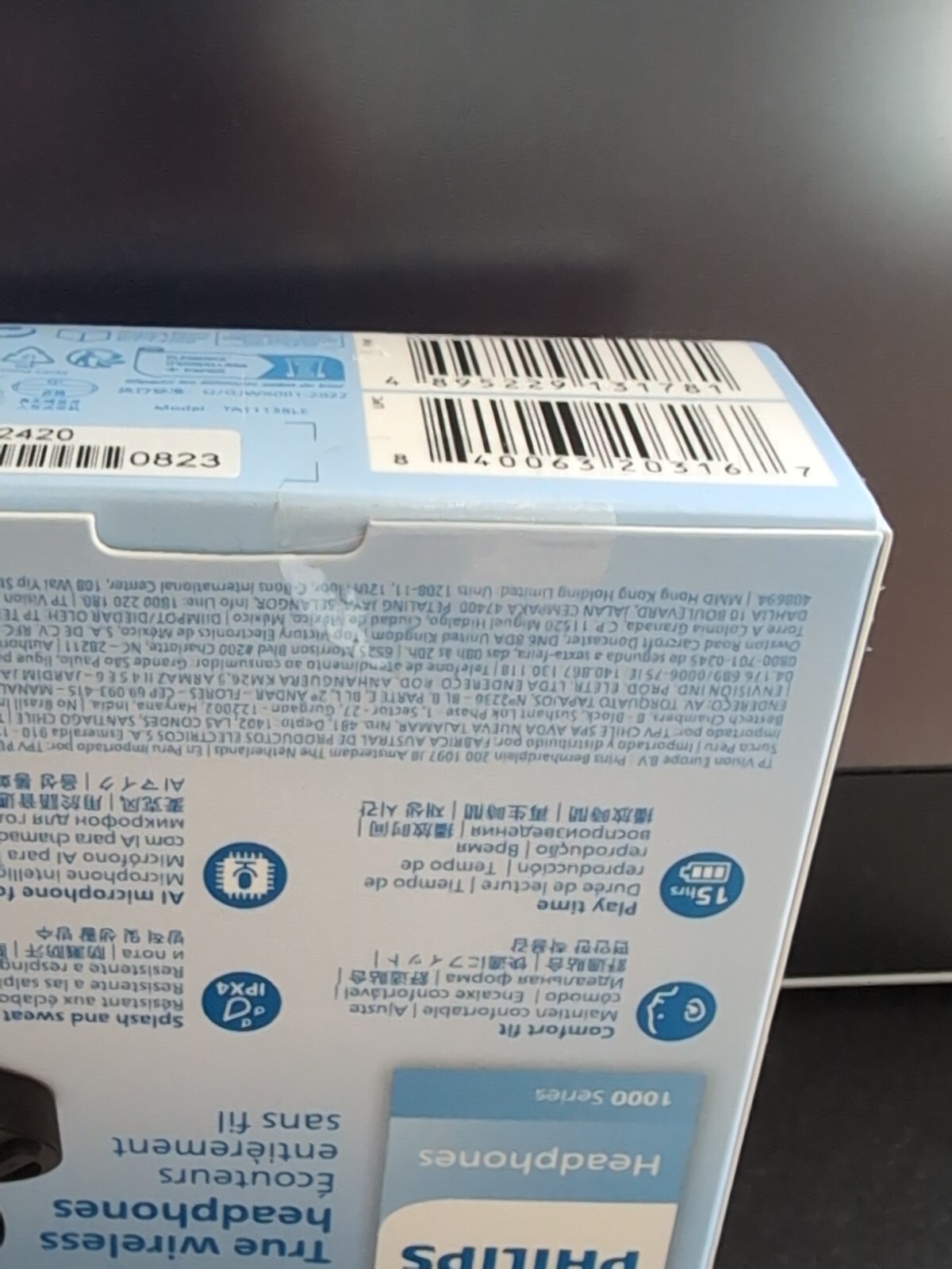 NIB Philips True Wireless Bluetooth Headphones 1000 Series 15hr Black TAT1138BK