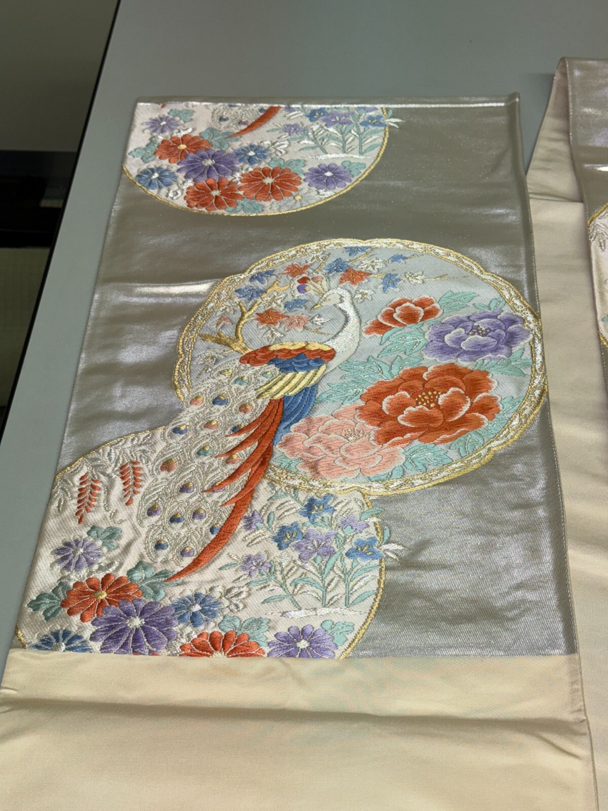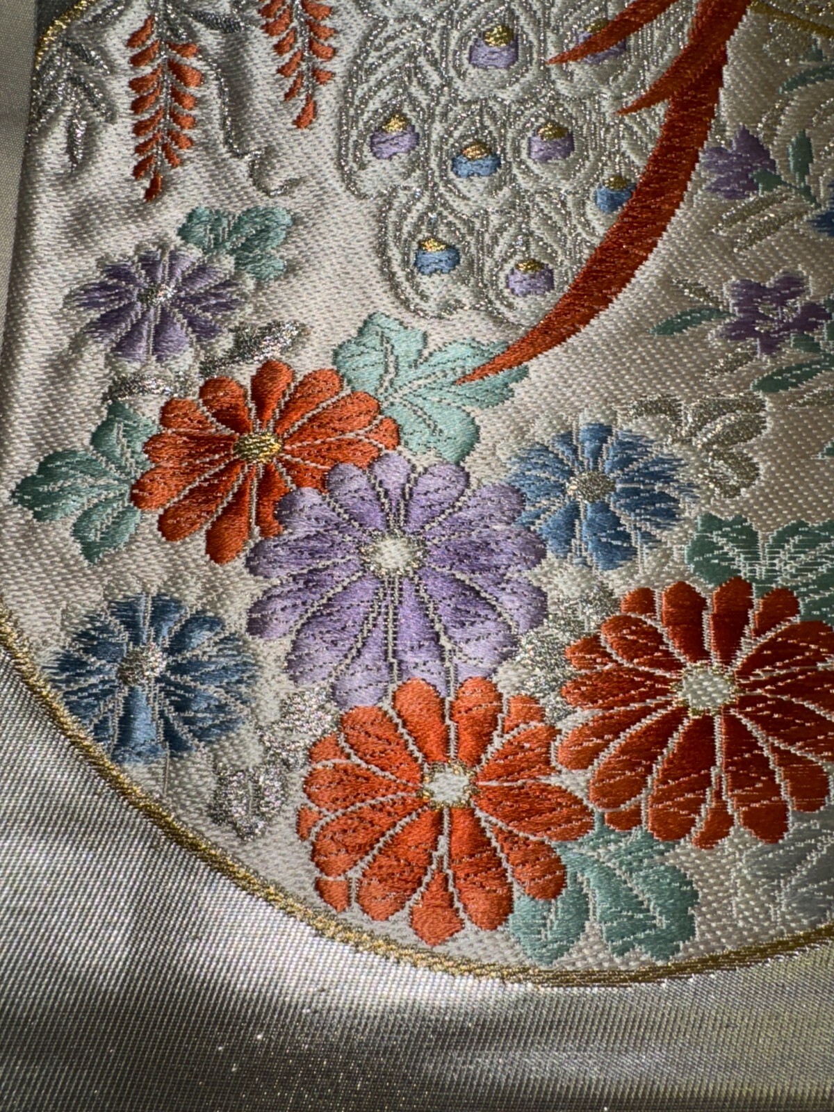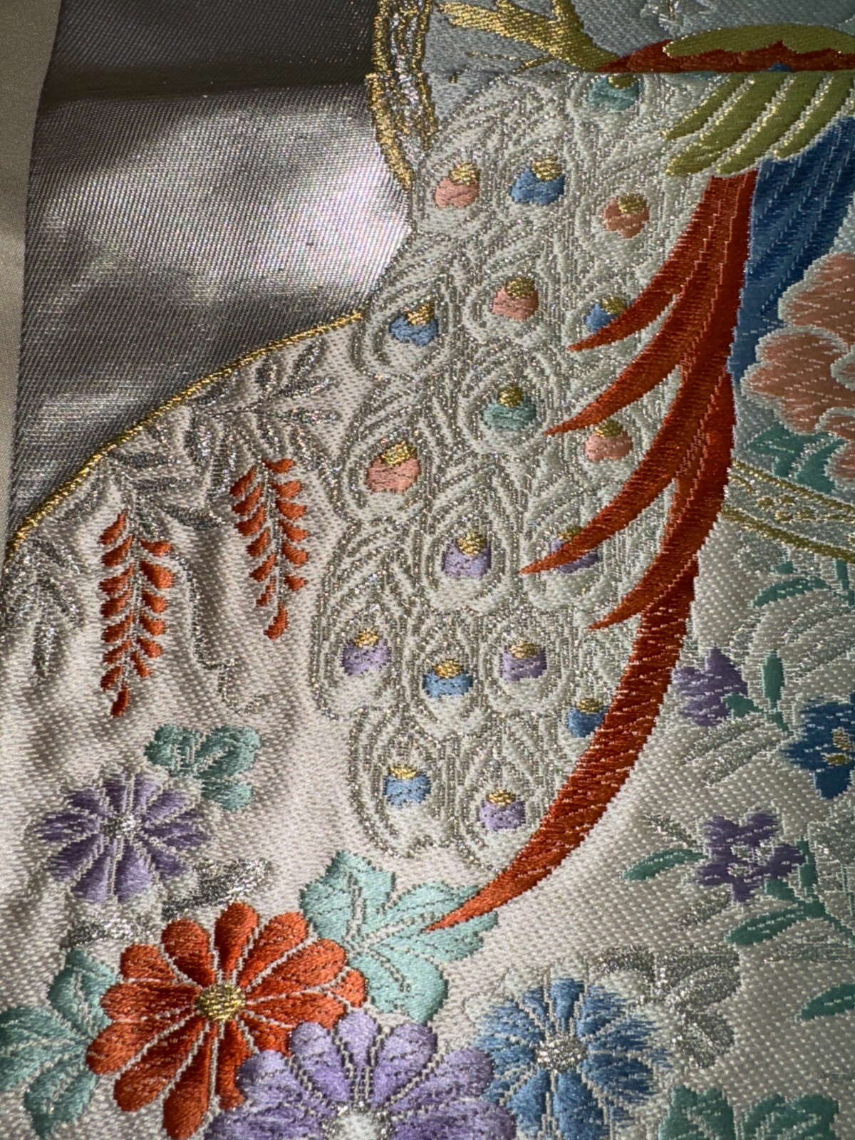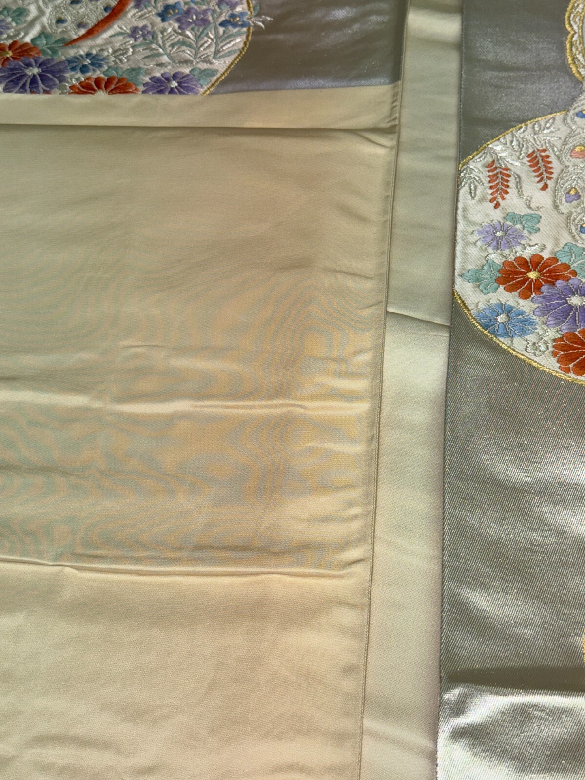 как выглядит Japanese Vintage Kimono Fukuro Obi silk Silver expensive Embroidery 167.7x12.2in фото