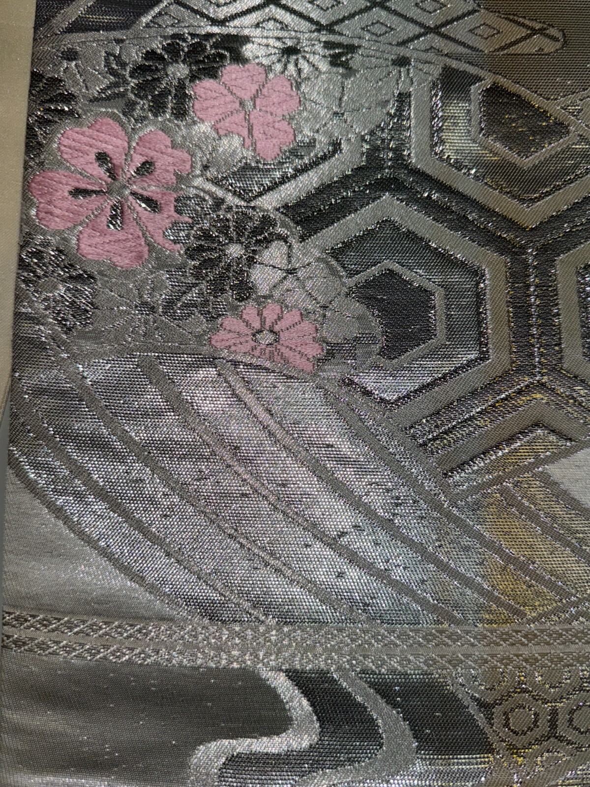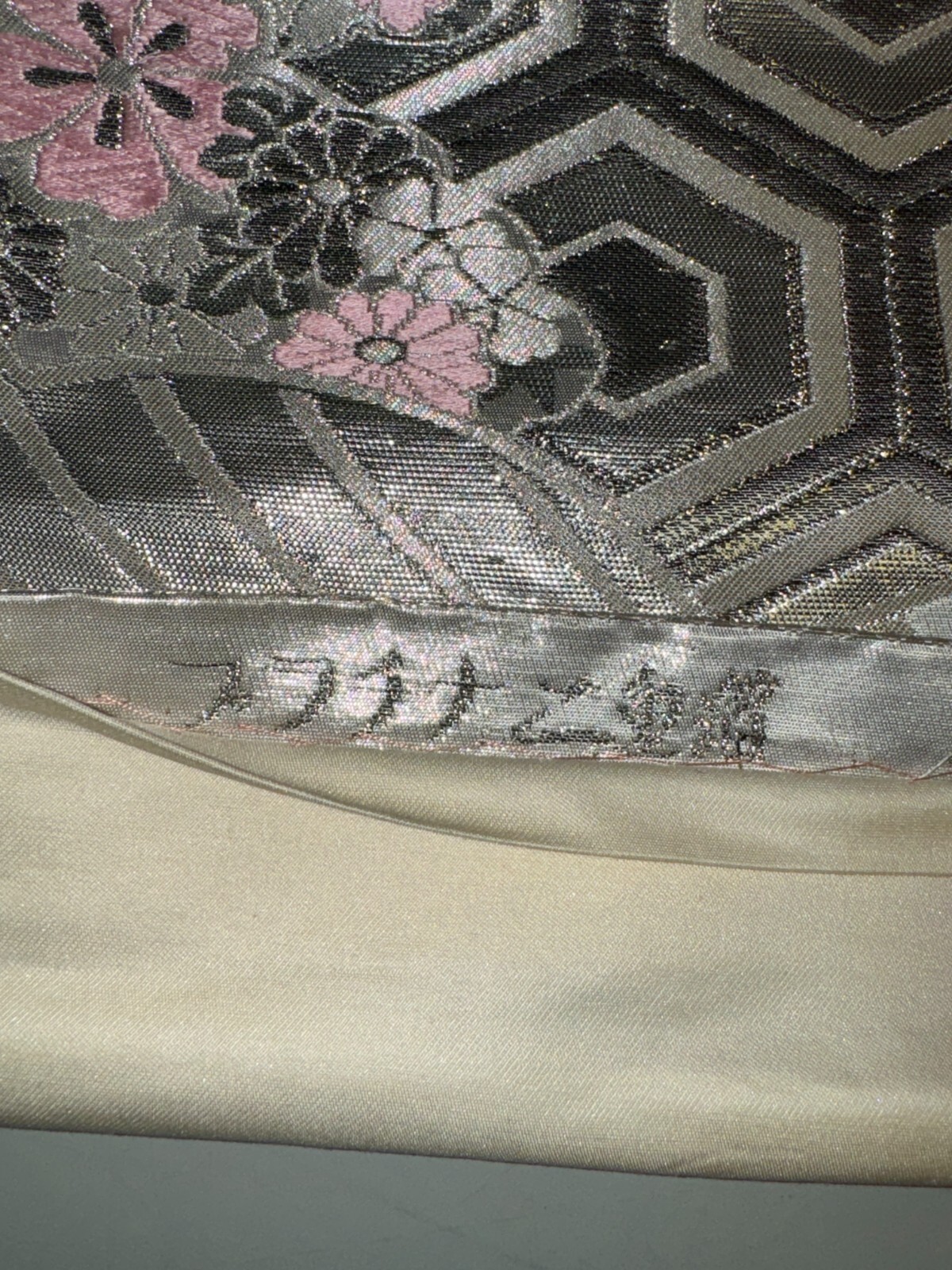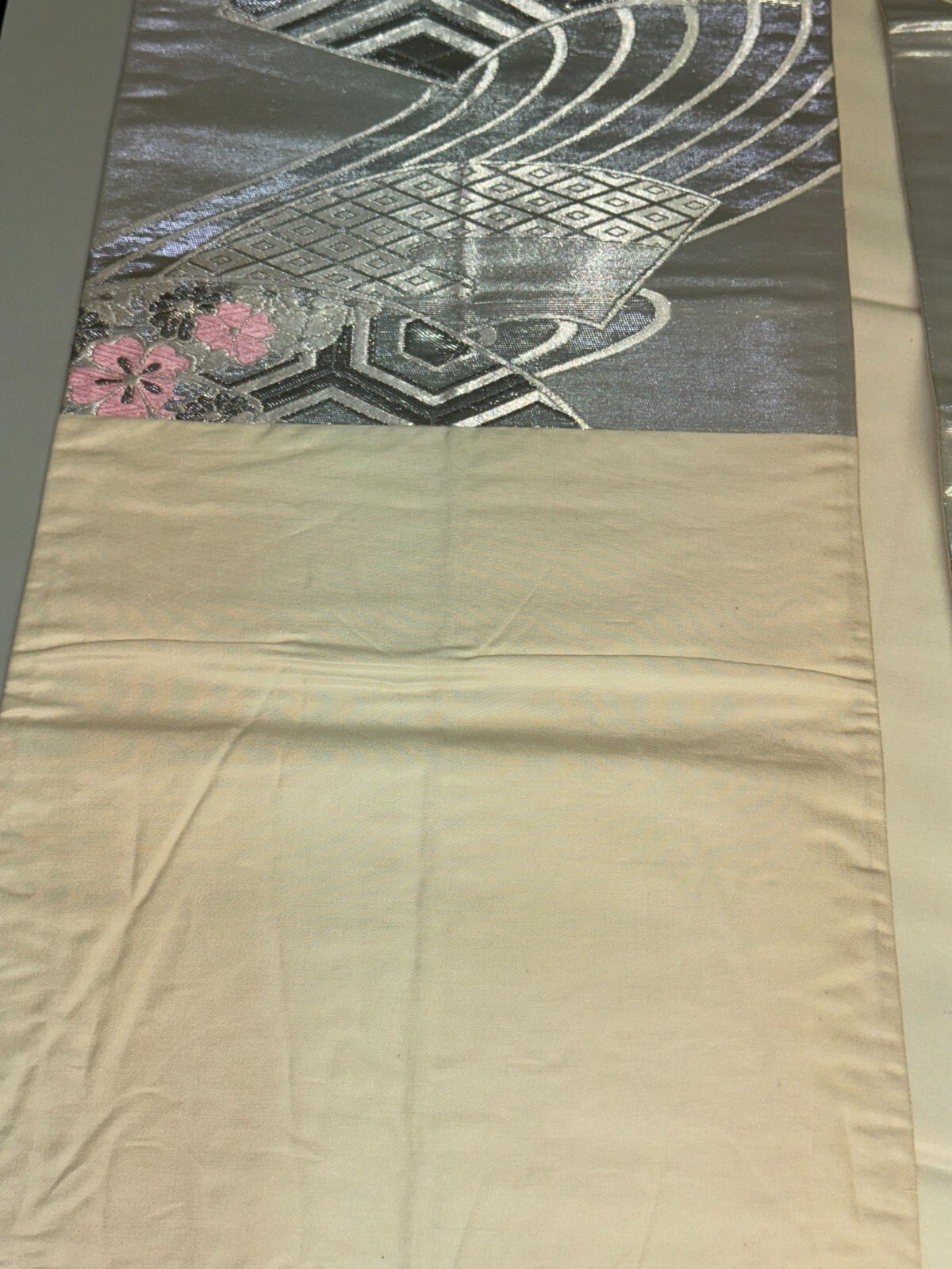 как выглядит Japanese Vintage Kimono Fukuro Obi silk Silver expensive Embroidery 161.4x11.8in фото