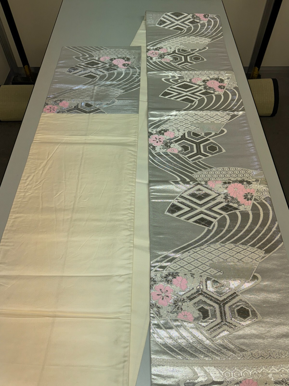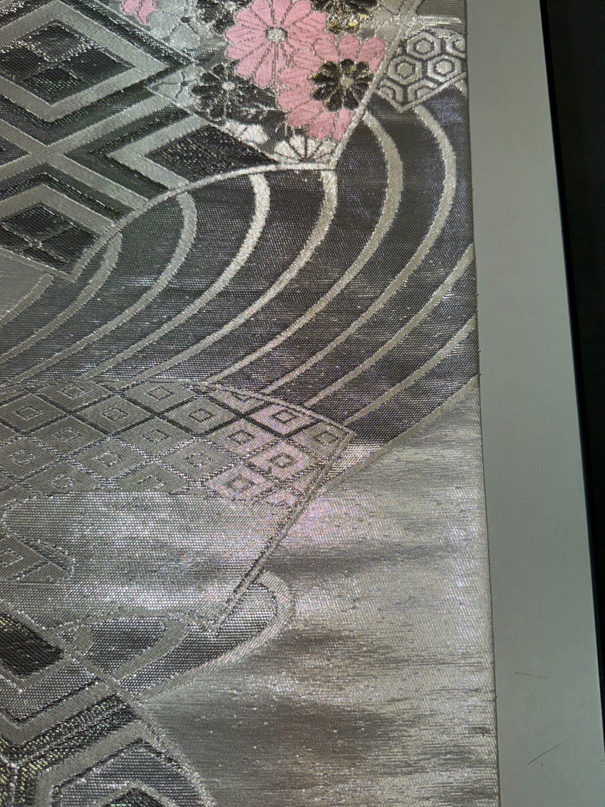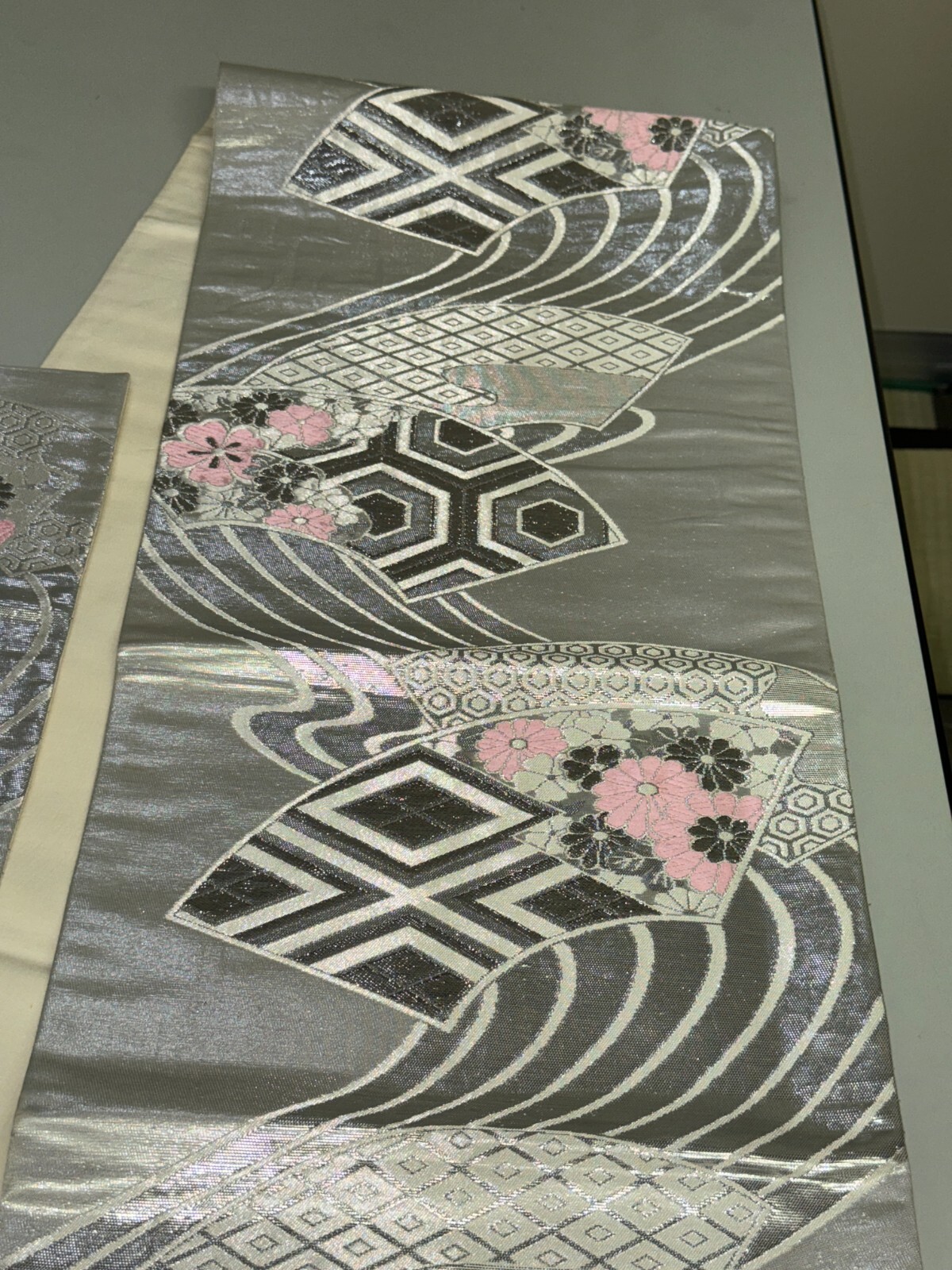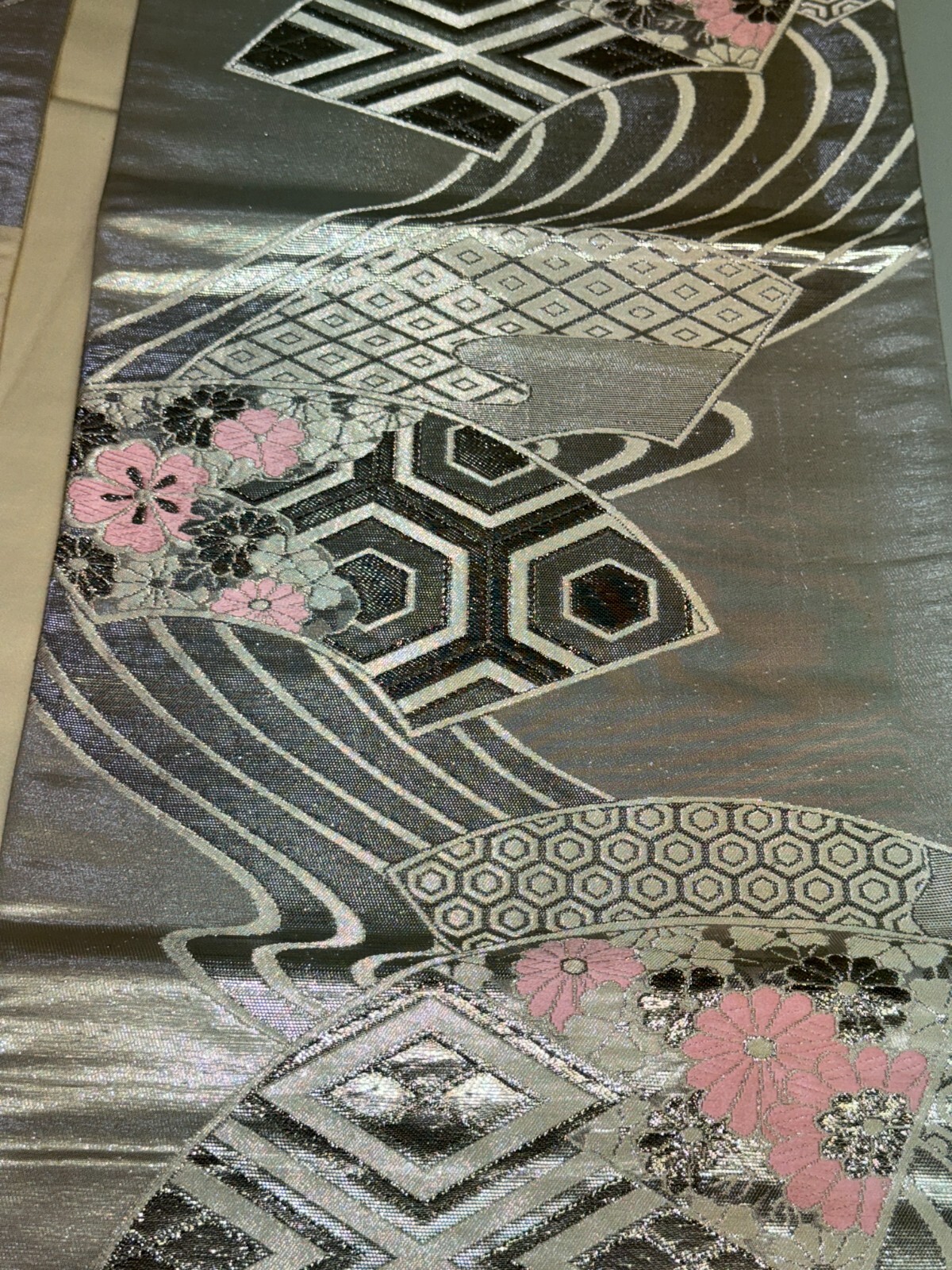 как выглядит Japanese Vintage Kimono Fukuro Obi silk Silver expensive Embroidery 161.4x11.8in фото