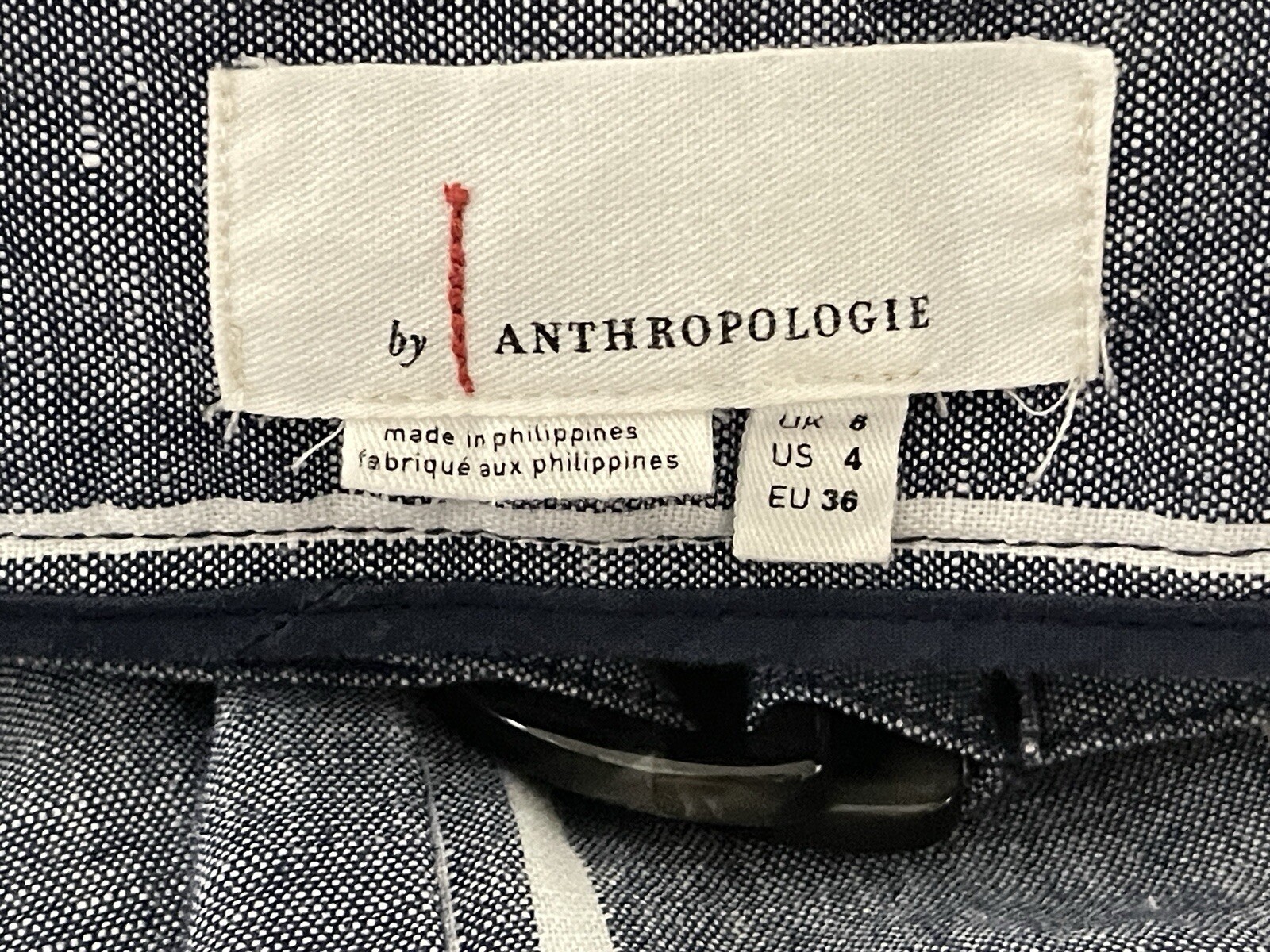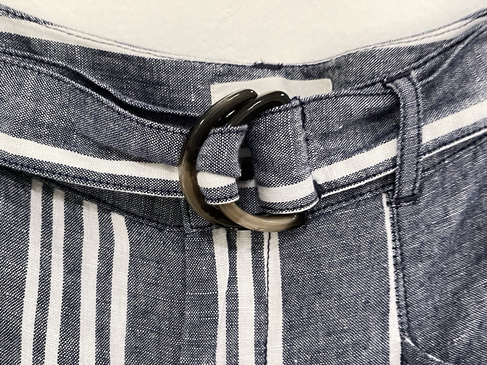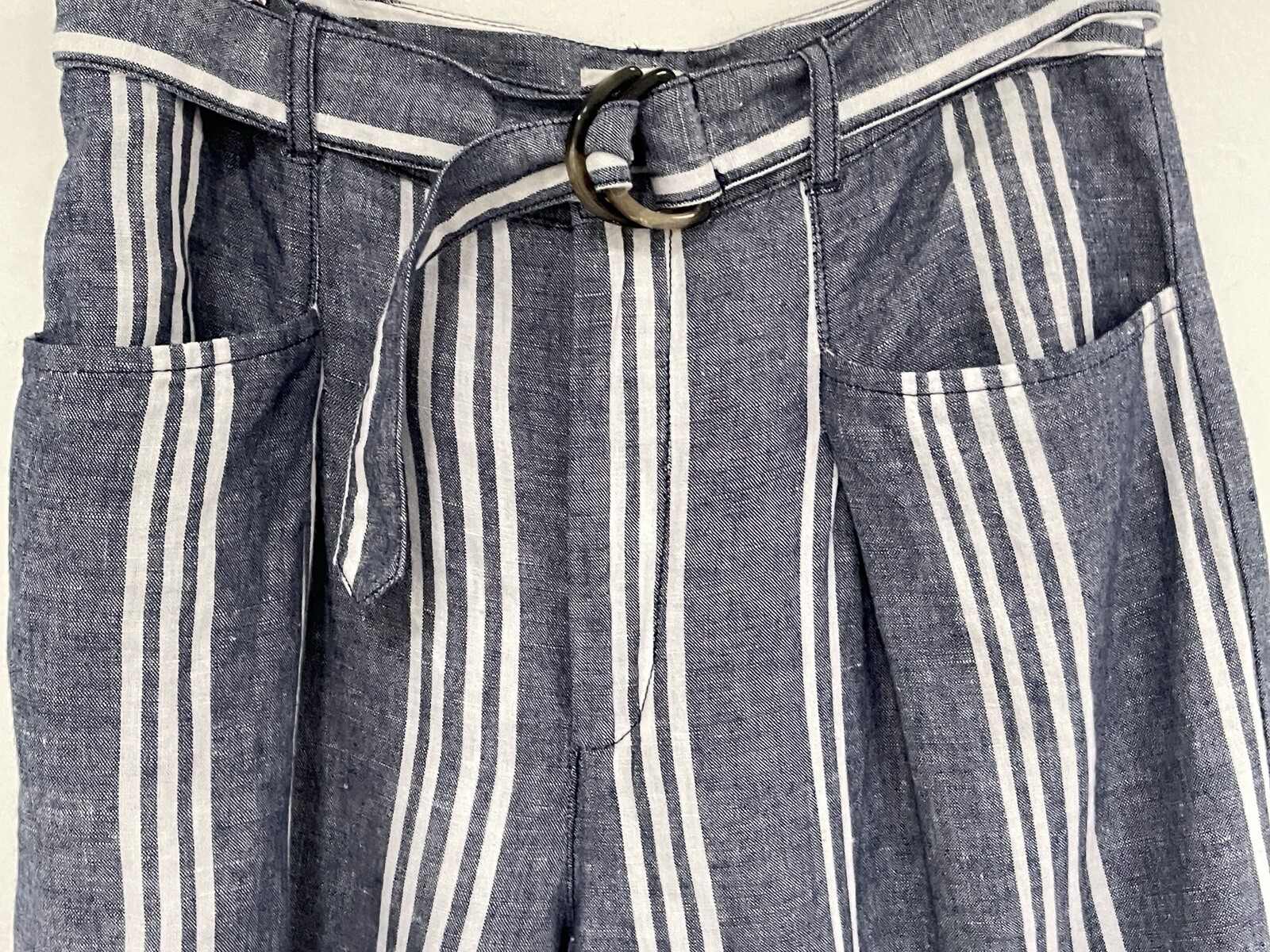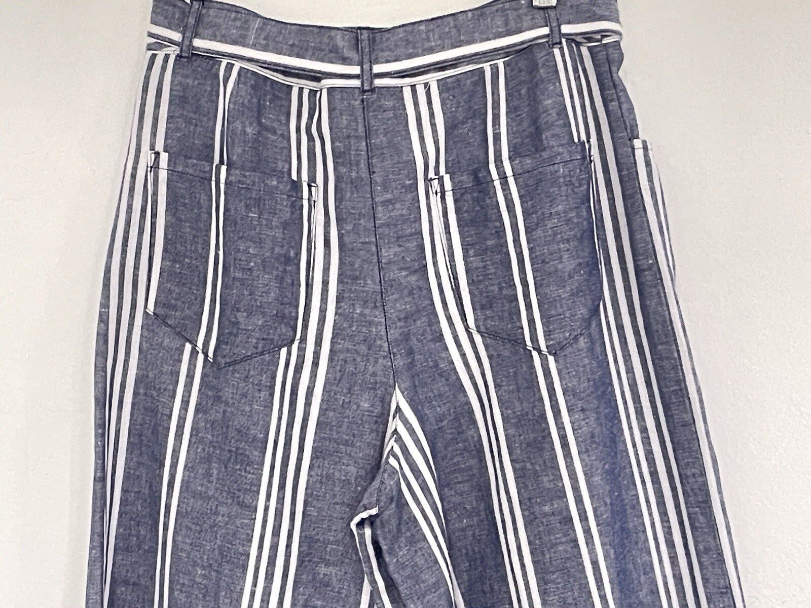 как выглядит Anthropologie Beachy Wide Leg Pants Linen Blend Blue White Striped sz 4 EUC фото