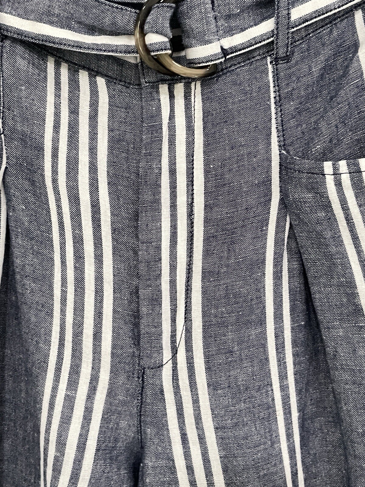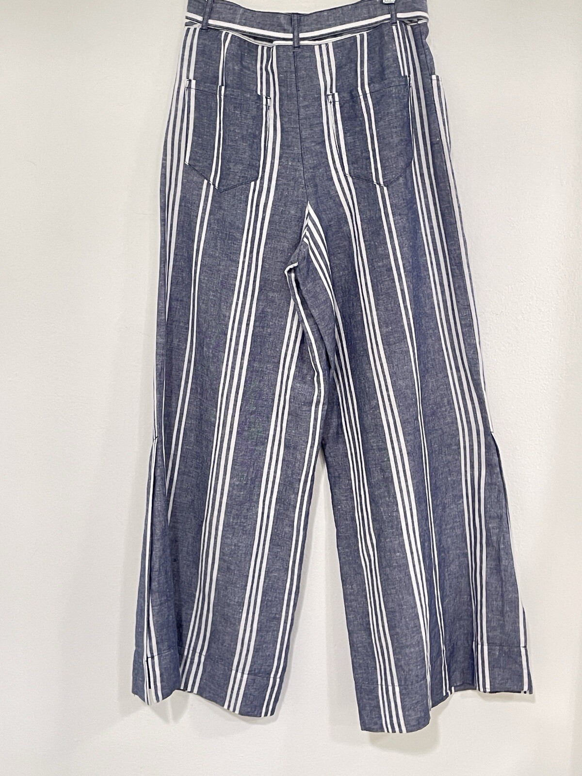 Anthropologie Beachy Wide Leg Pants Linen Blend Blue White Striped sz 4 EUC