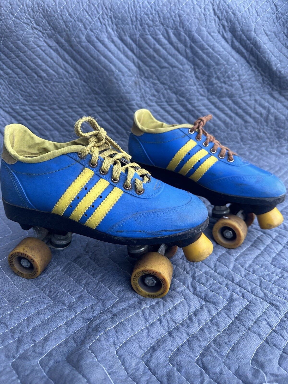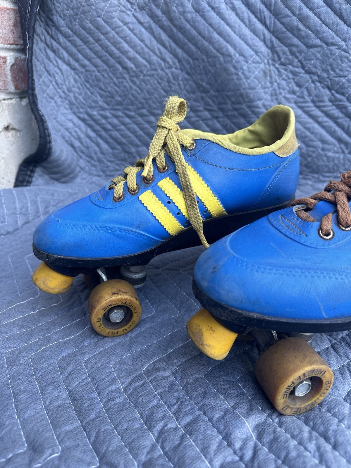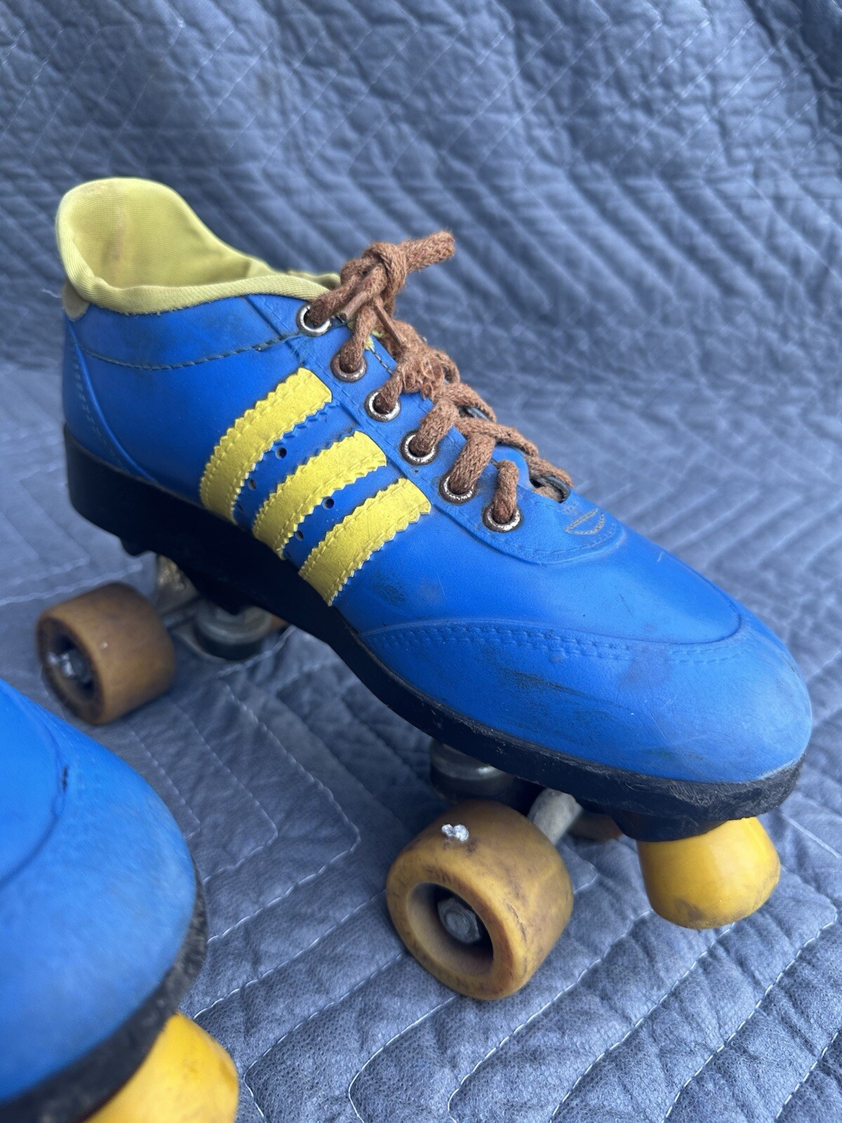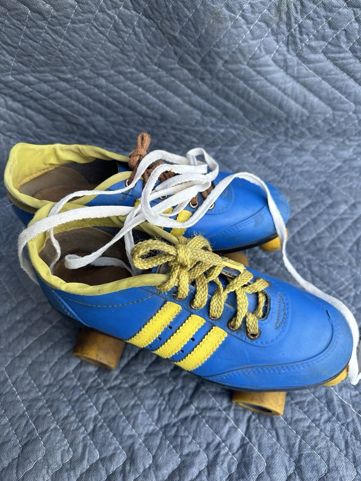 как выглядит Vintage 1980s Colt Outdoor Indoor Great Skates Roller Blue Yellow Size 6-8 Low фото