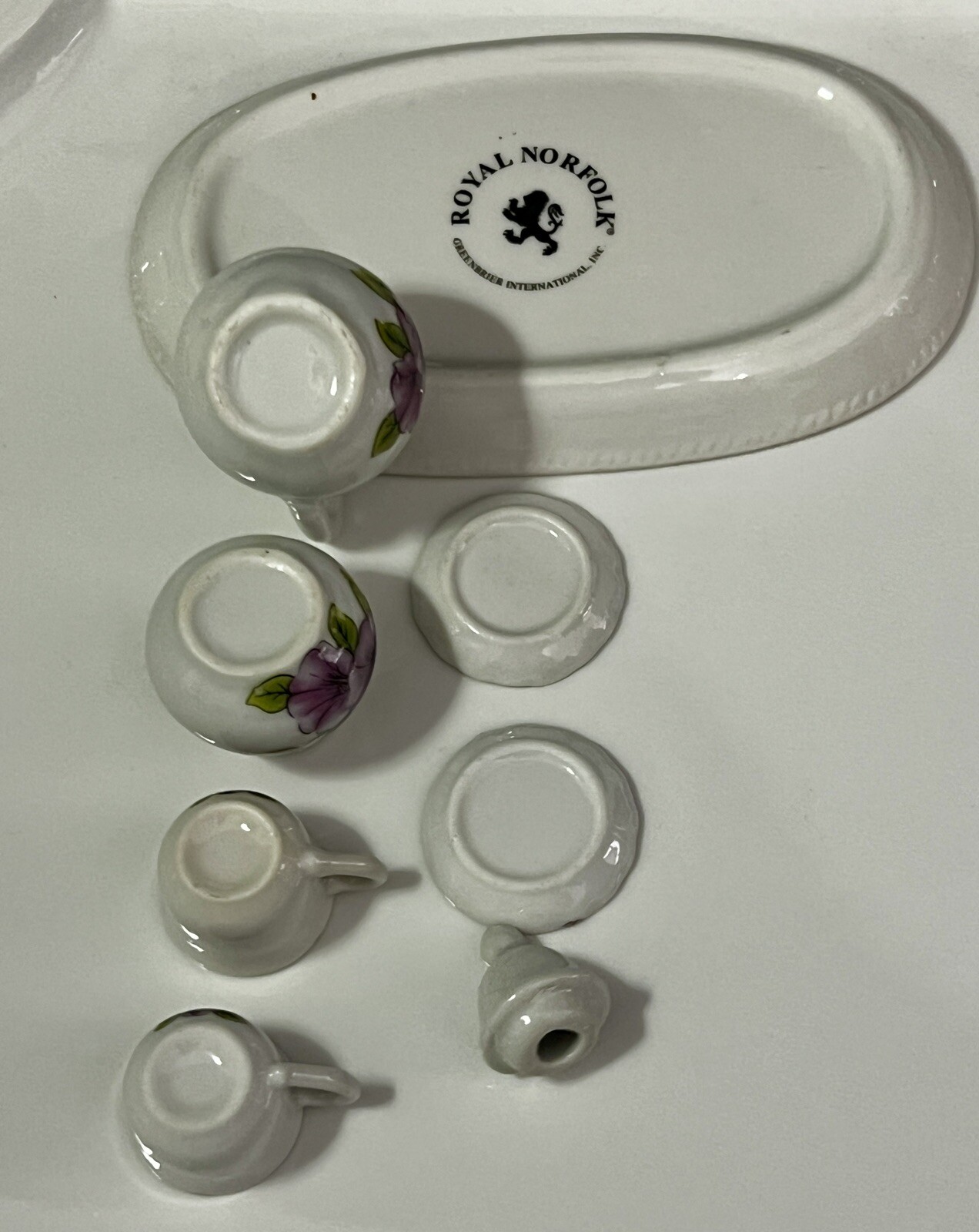 Vintage Royal Norfolk Greenbriar Purple Morning Glory Mini Doll Tea Set