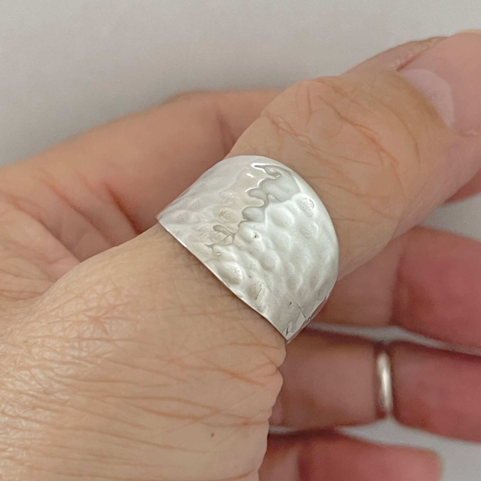 Sterling Silver Thin Hammered Concave Ring, Boho Ring, Silver Rings, Silver Band