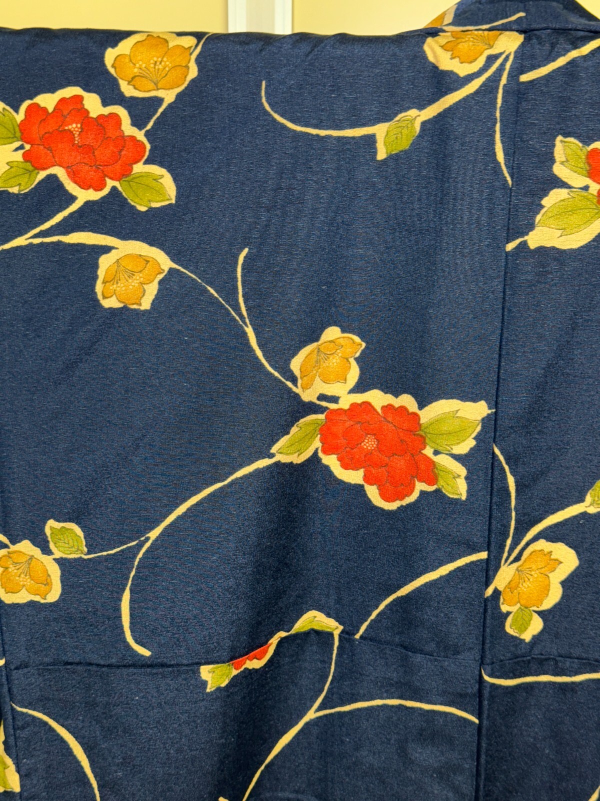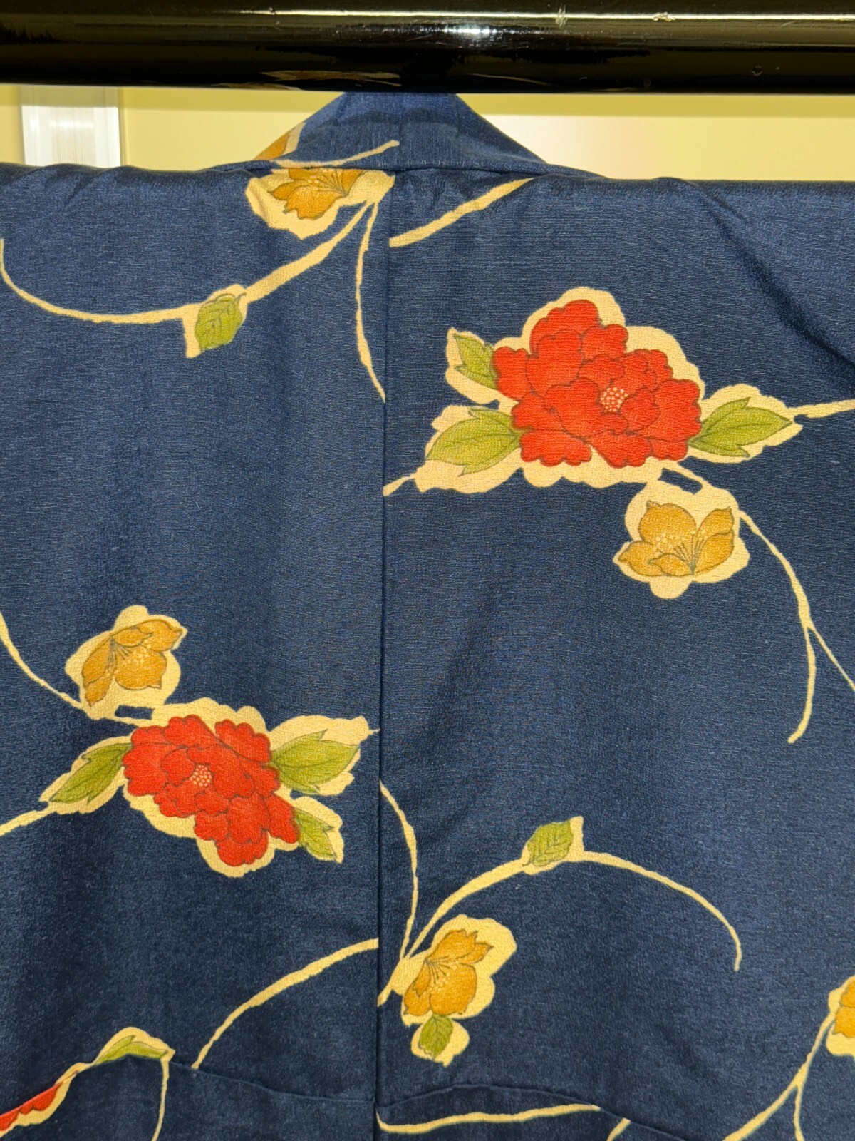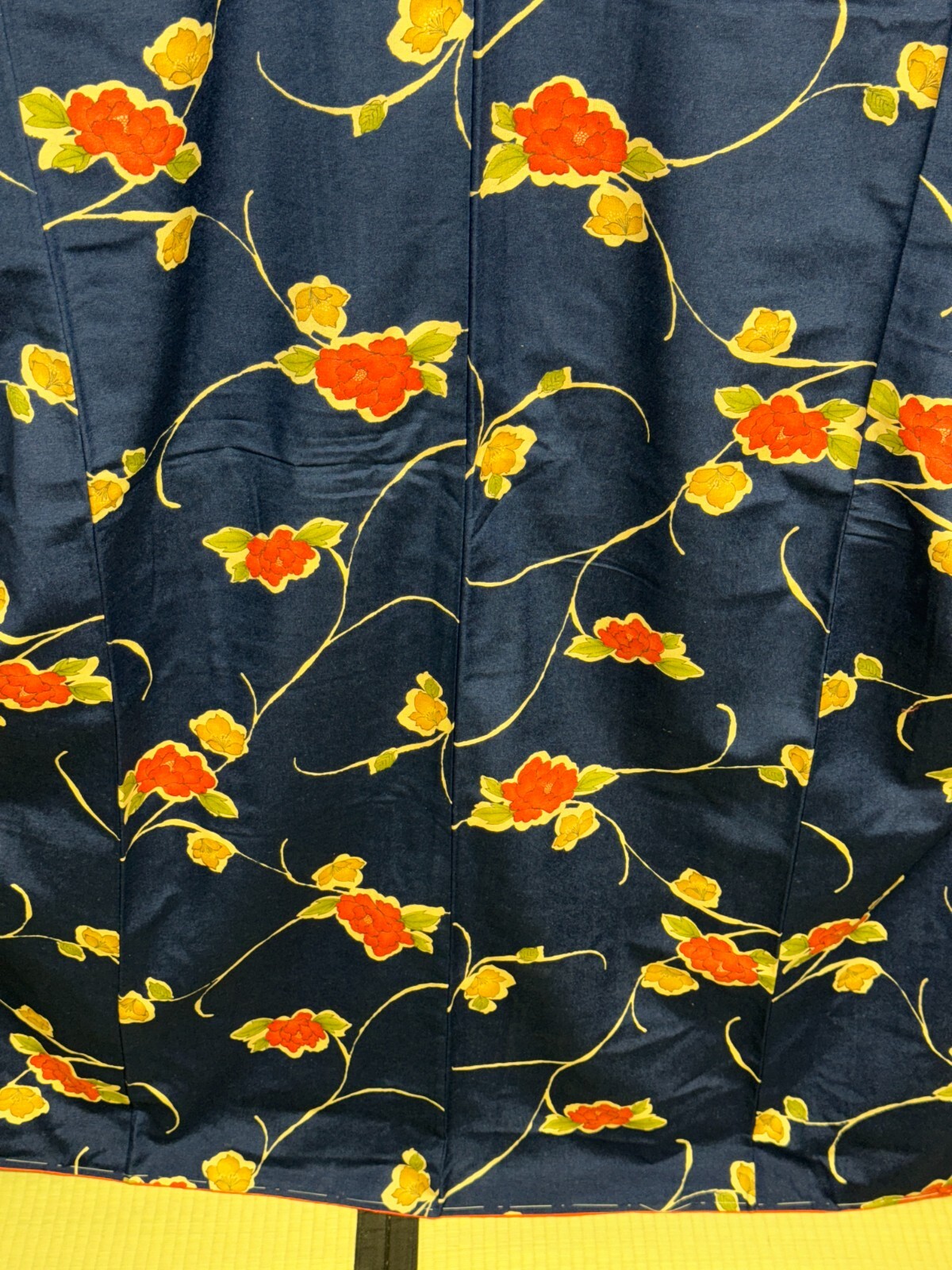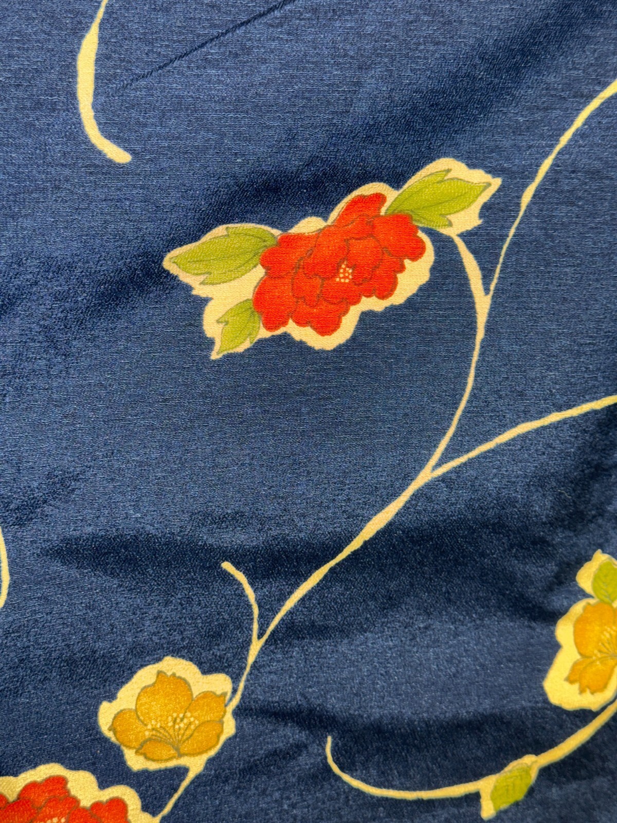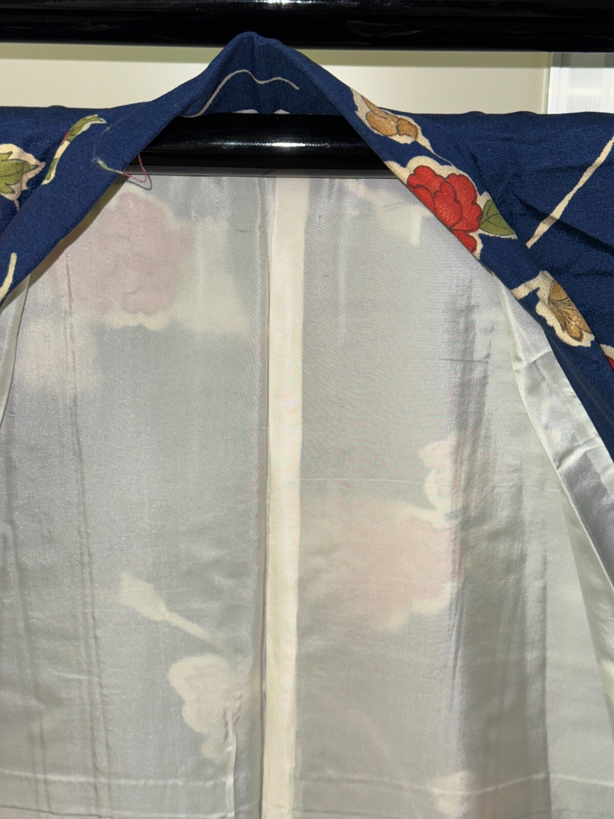 как выглядит Japanese Vintage Kimono Pure Silk Navy Flower Expensive Tradition Height 64.56in фото