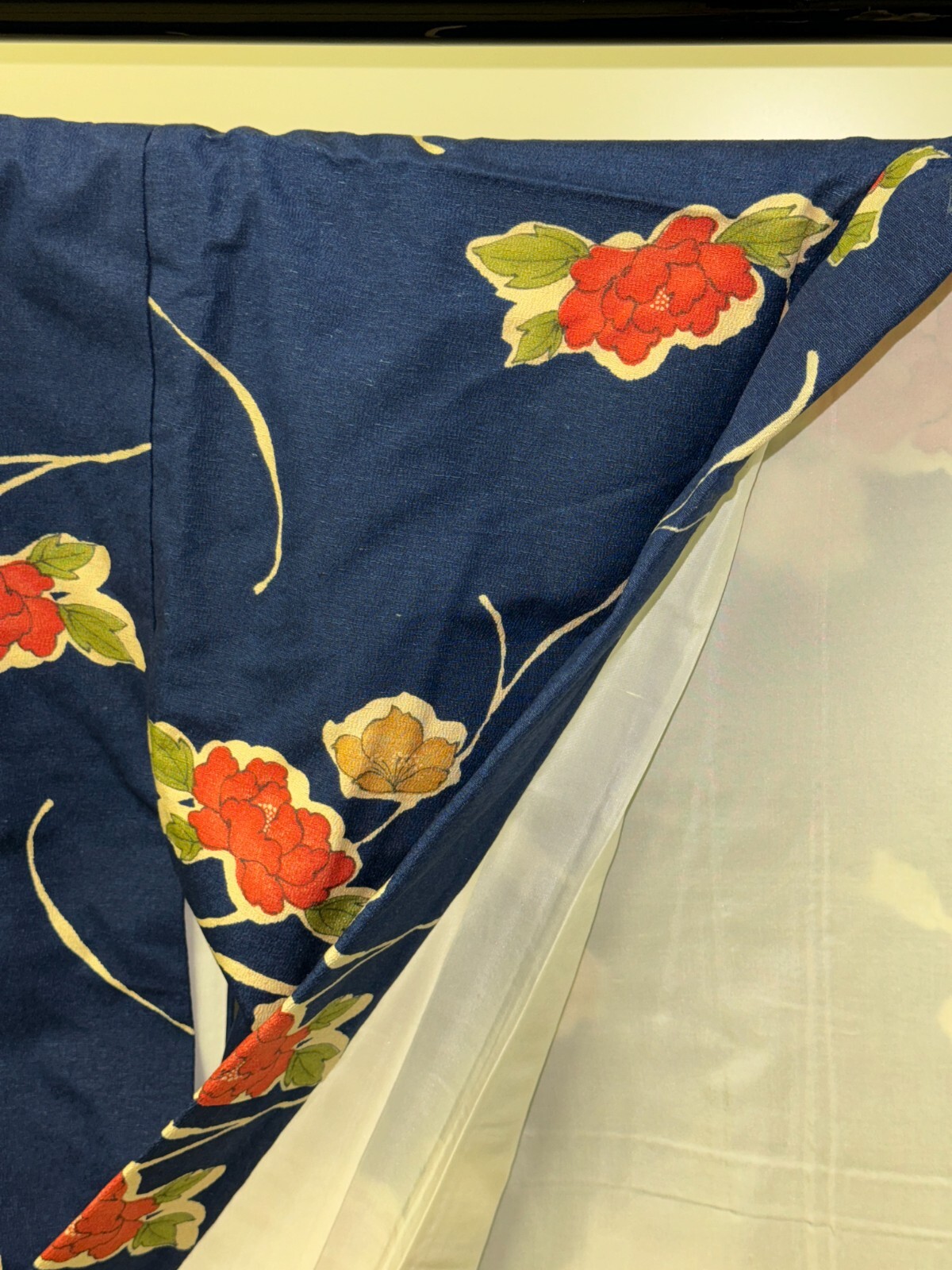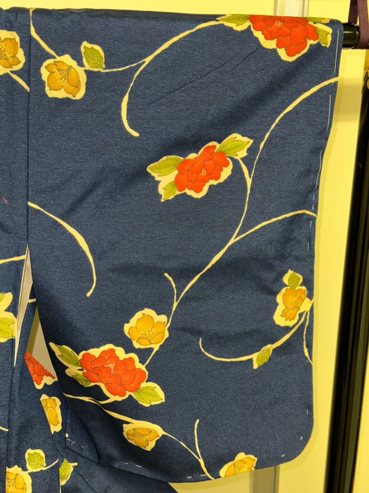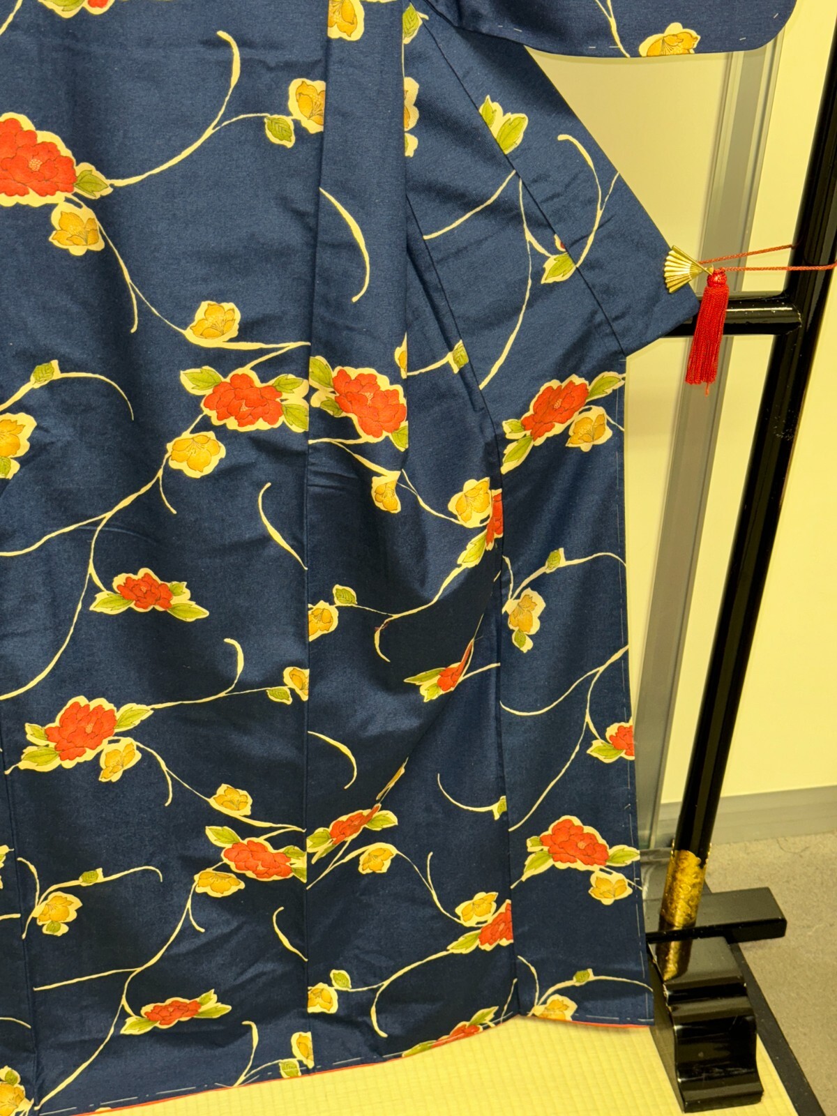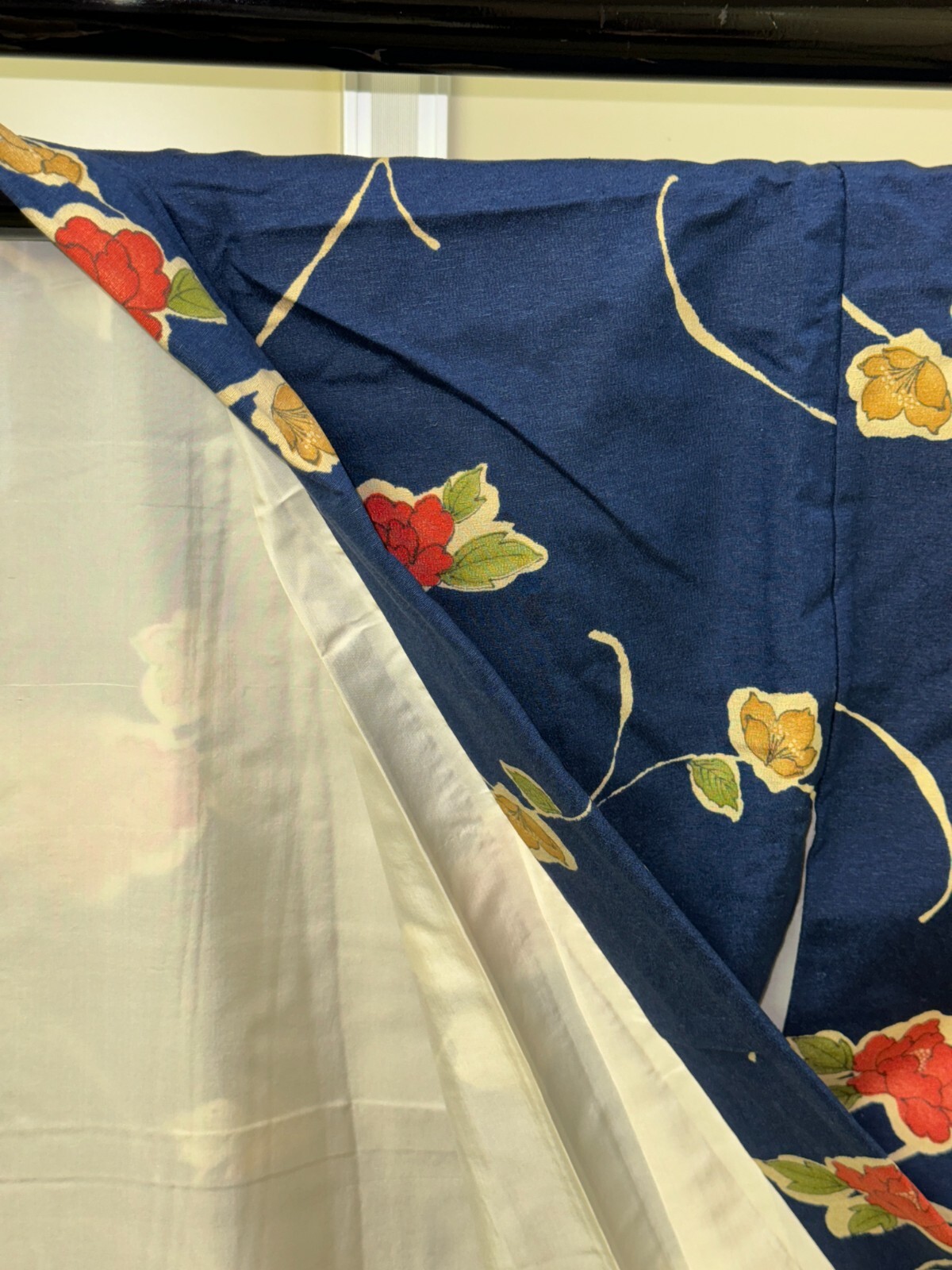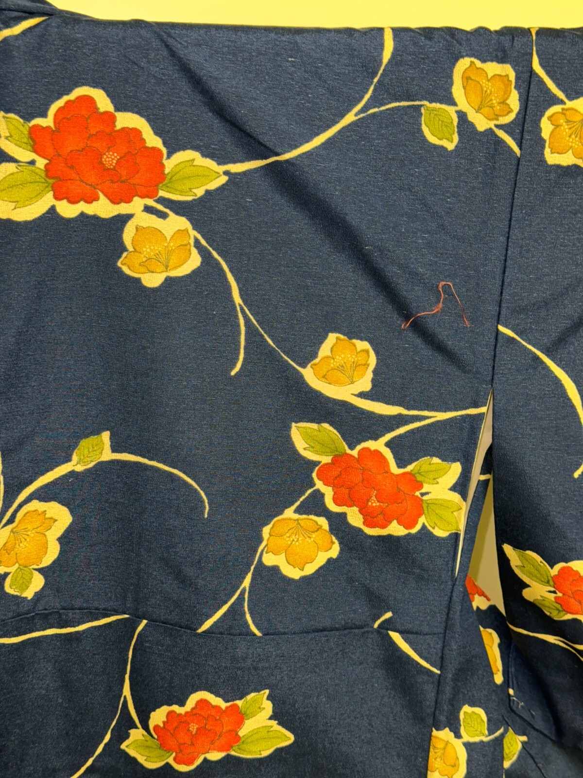 как выглядит Japanese Vintage Kimono Pure Silk Navy Flower Expensive Tradition Height 64.56in фото