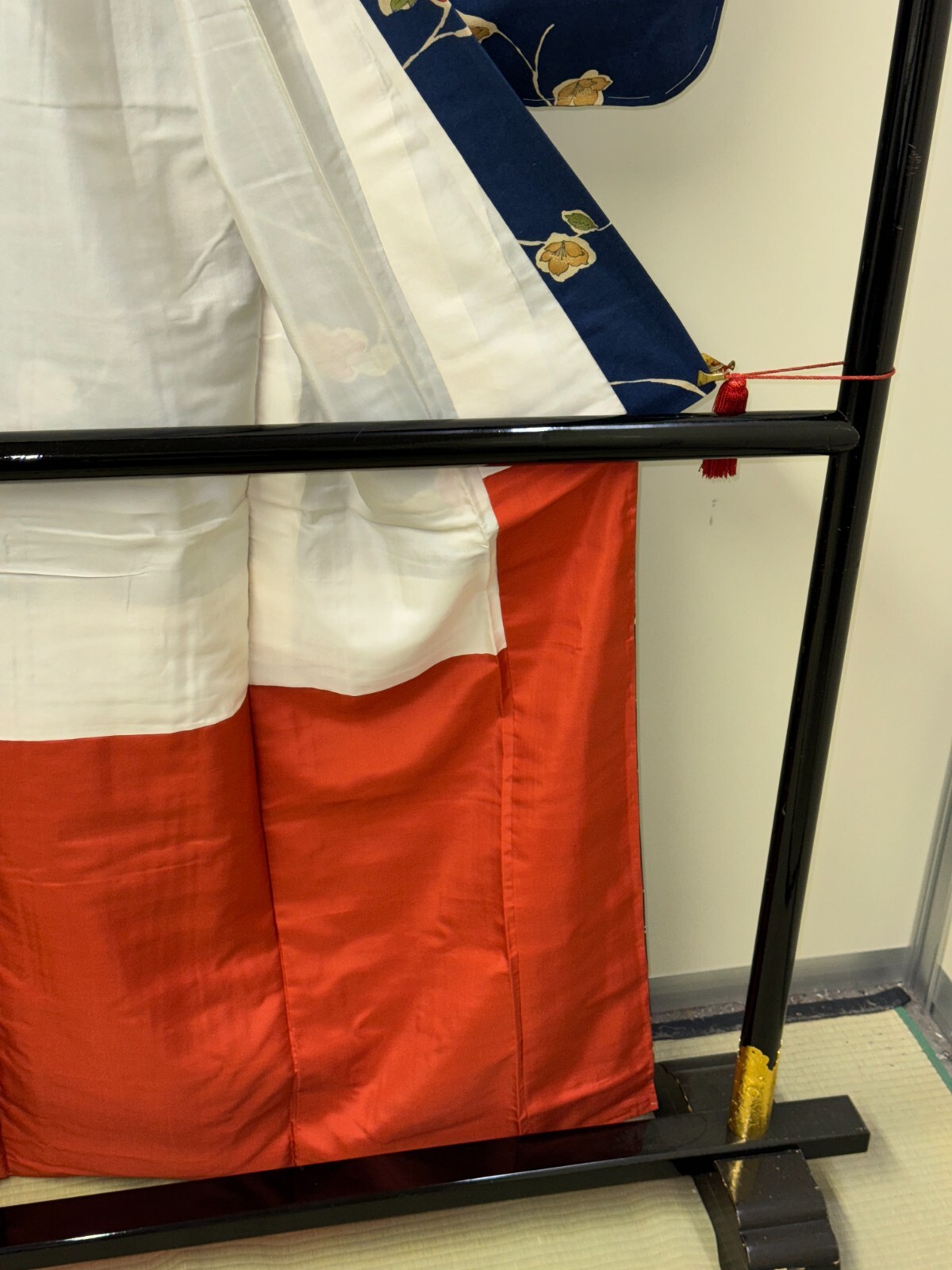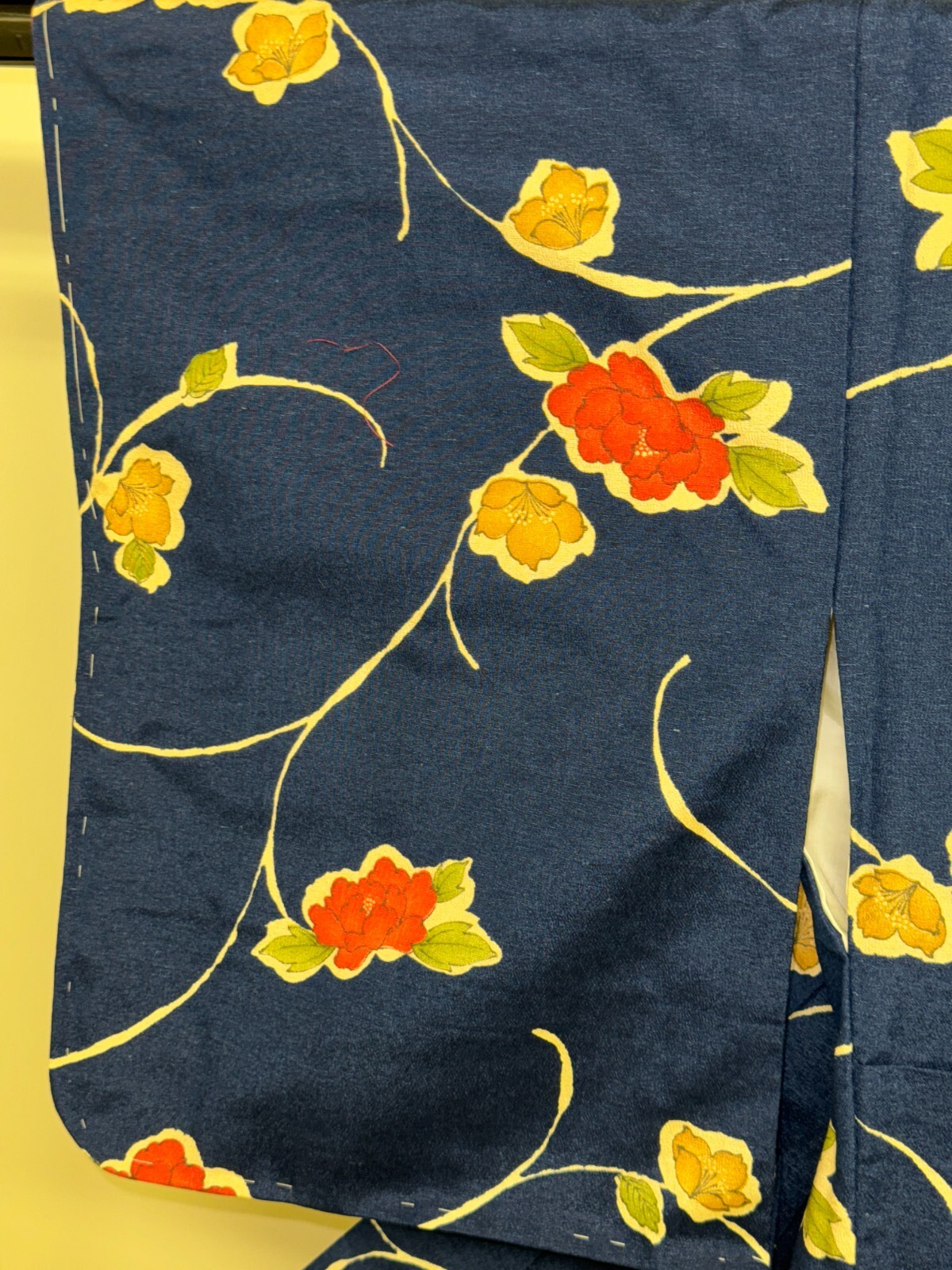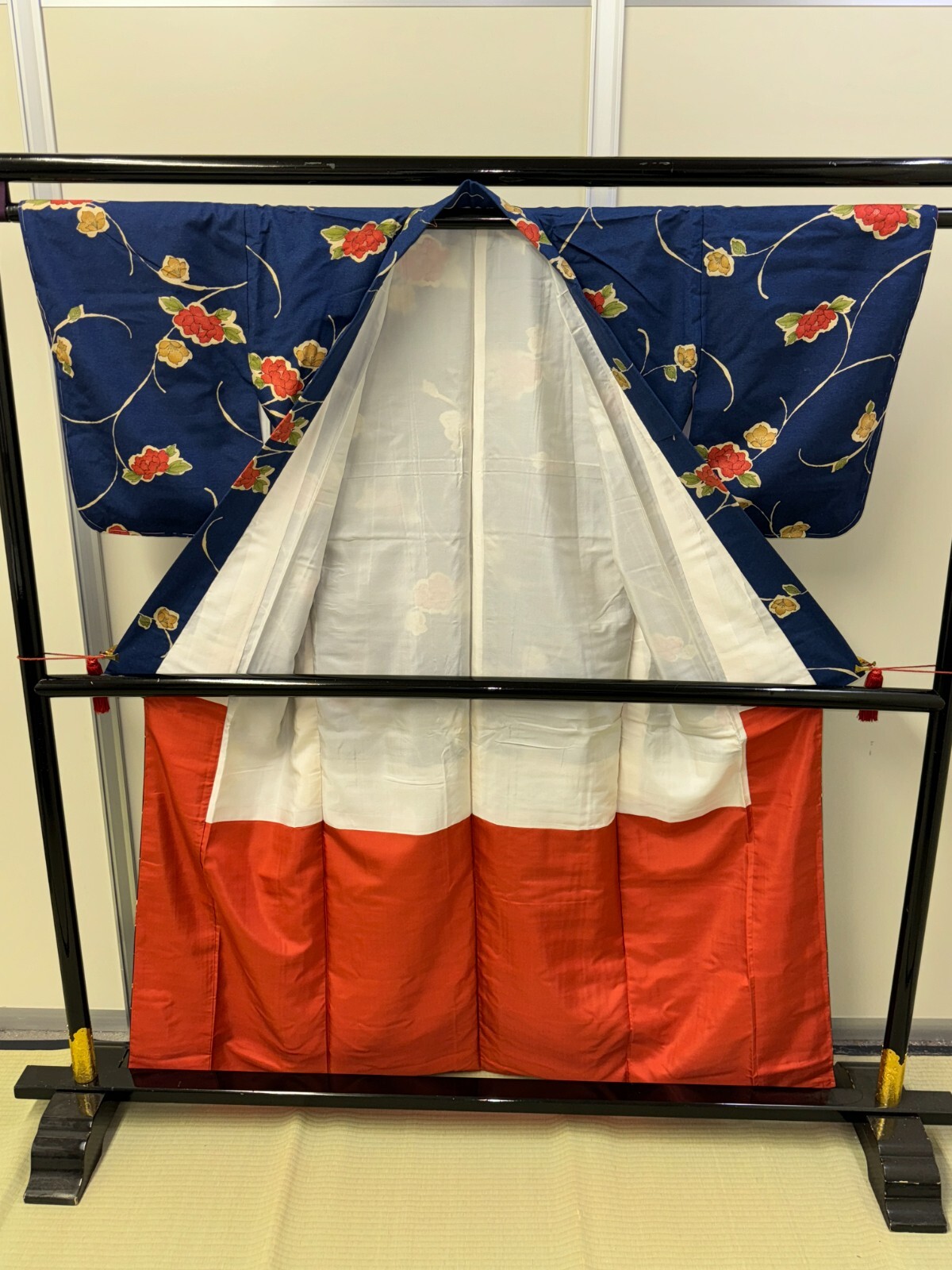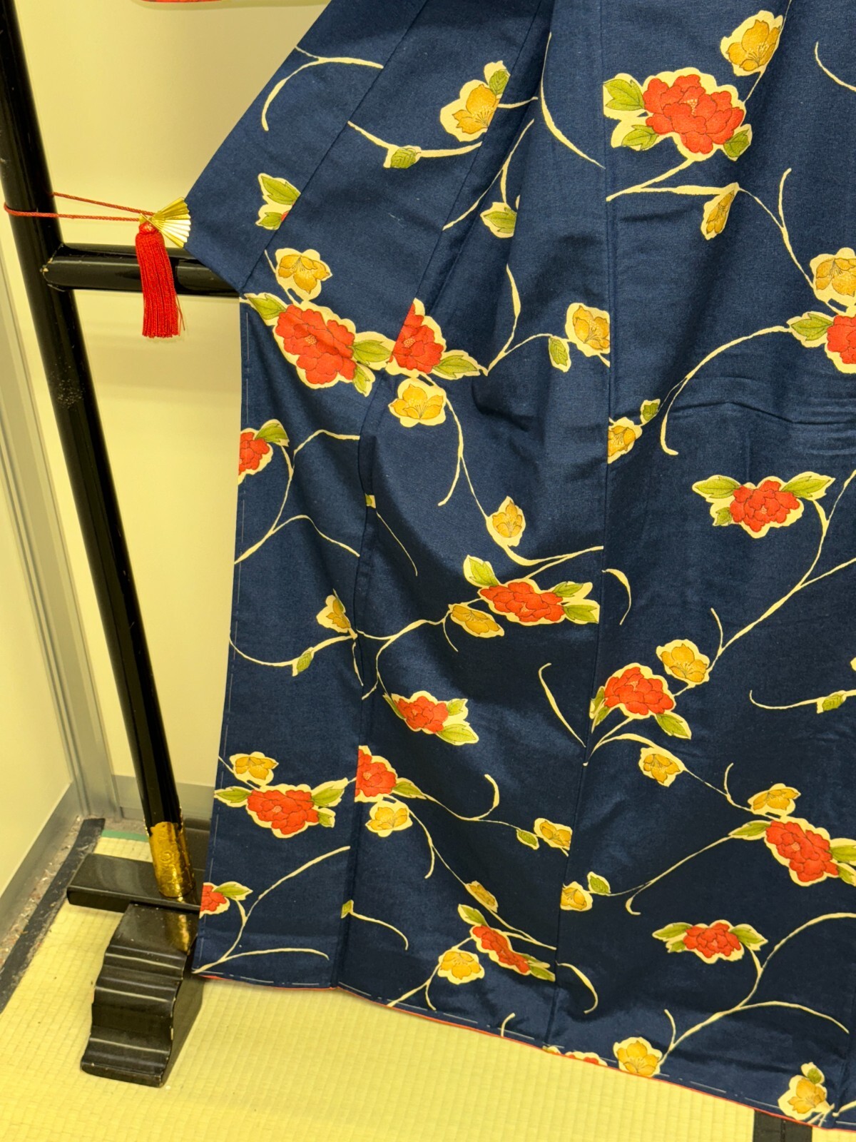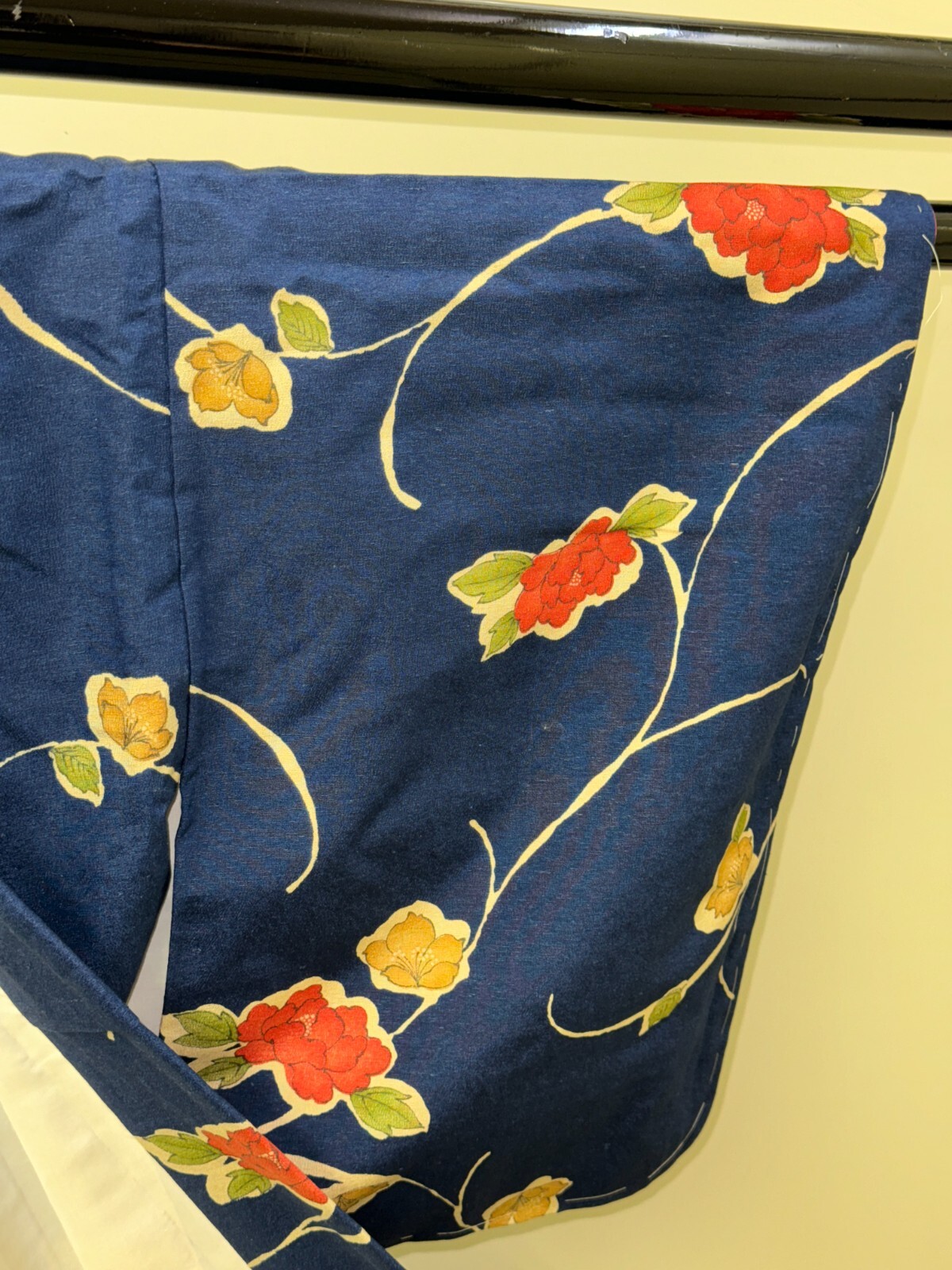 как выглядит Japanese Vintage Kimono Pure Silk Navy Flower Expensive Tradition Height 64.56in фото