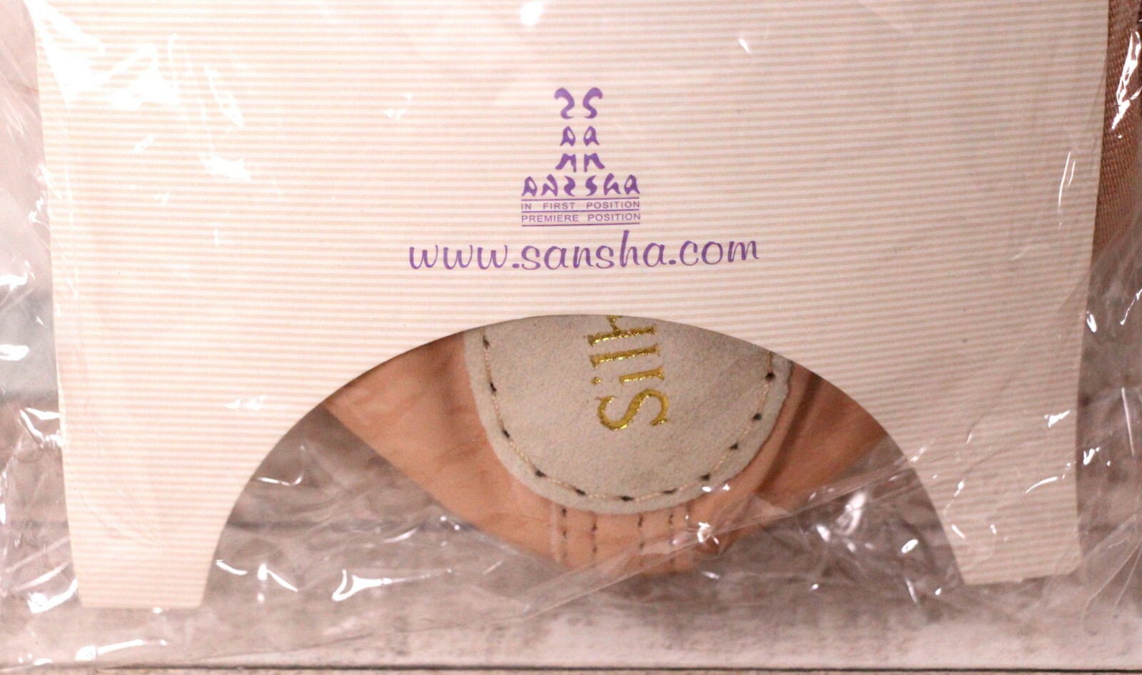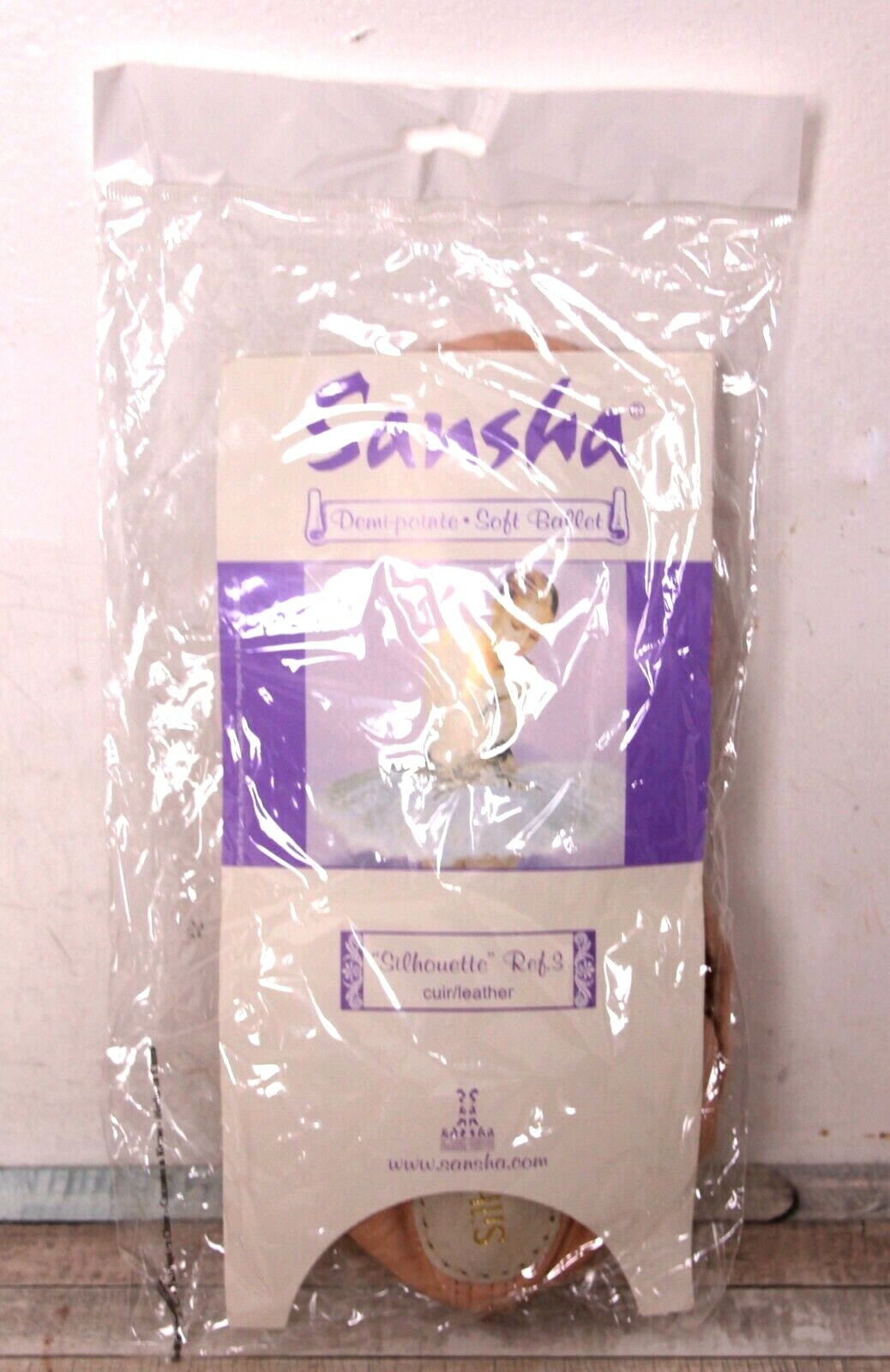 NEW Sansha 3 Silhouette LEATHER PINK split sole ballet shoe w/elastics Sz 8M