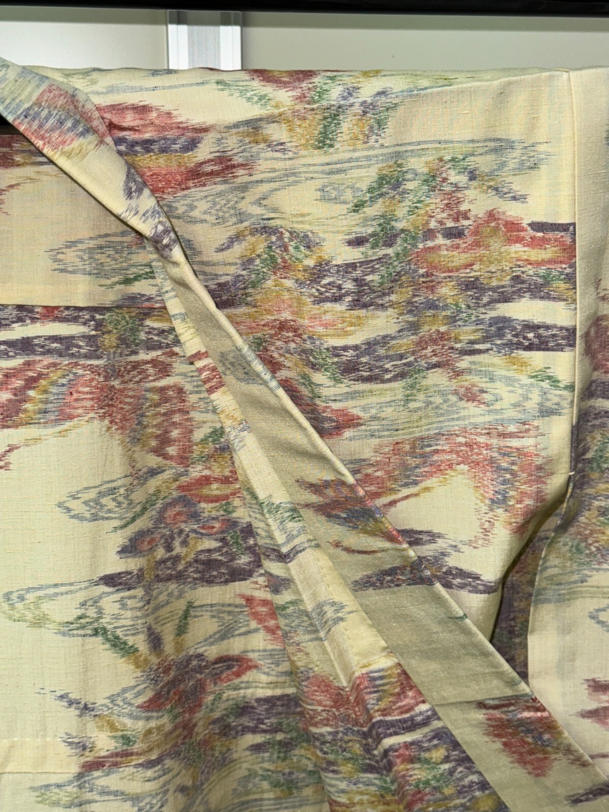 как выглядит Japanese Vintage Kimono Pure Silk White Tsumugi Expensive Tradition Height 61in фото