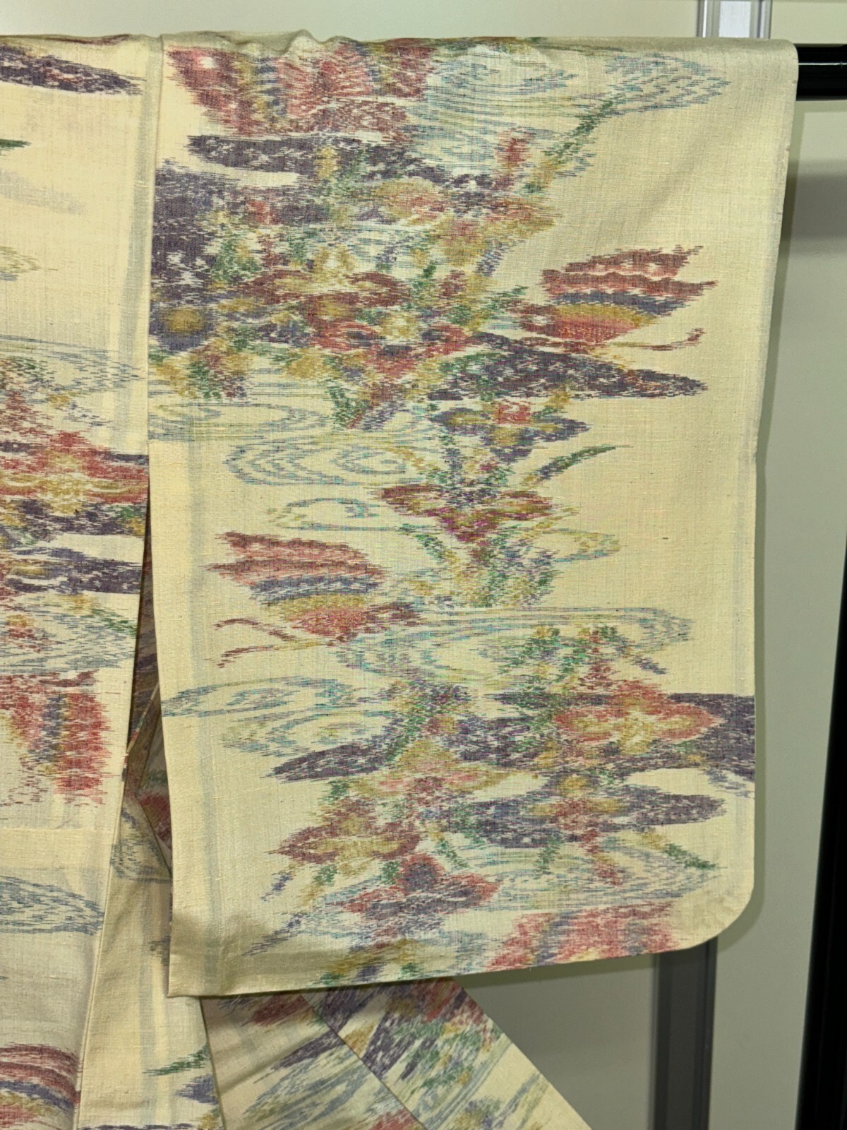 • Japanese Vintage Kimono Pure Silk White Tsumugi Expensive Tradition Height 61in