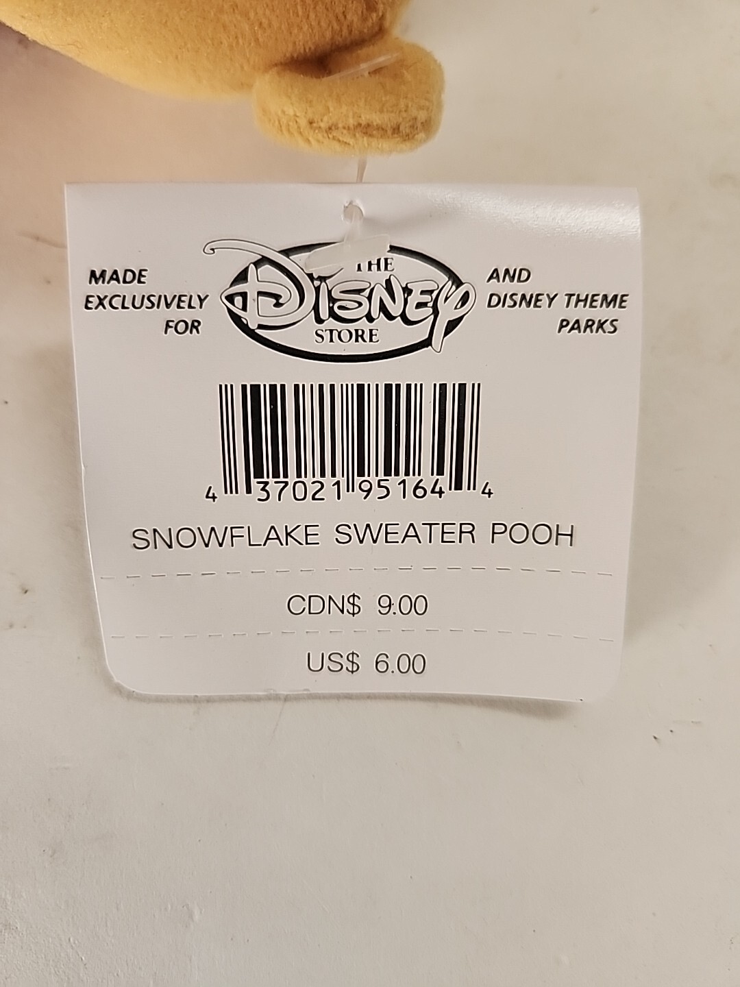 Disney Store Christmas Snowflake Sweater Pooh Mini Bean Bag 8 Plush