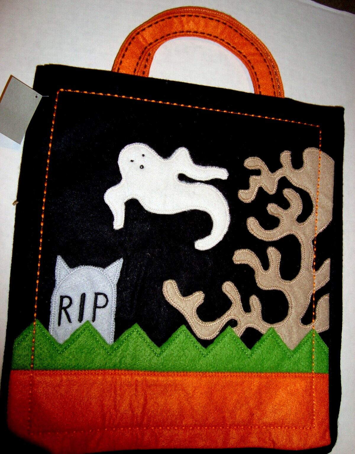 HALLOWEEN FELT GOODY BAG/TOTE GHOST IN GRAVEYARD SCENE 12" NEW