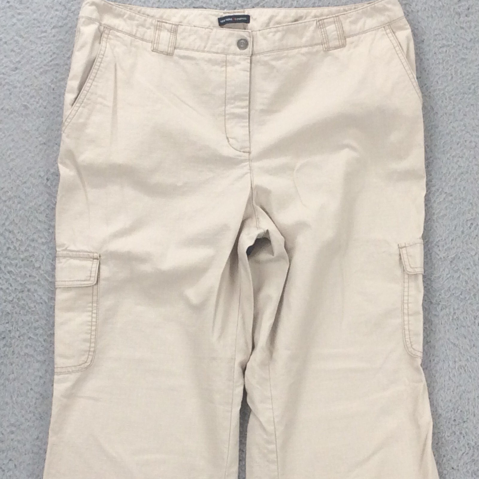 как выглядит Cargo Hiking Pants Womens 16 Light Khaki Cotton Roll Up-Snap New York Company фото