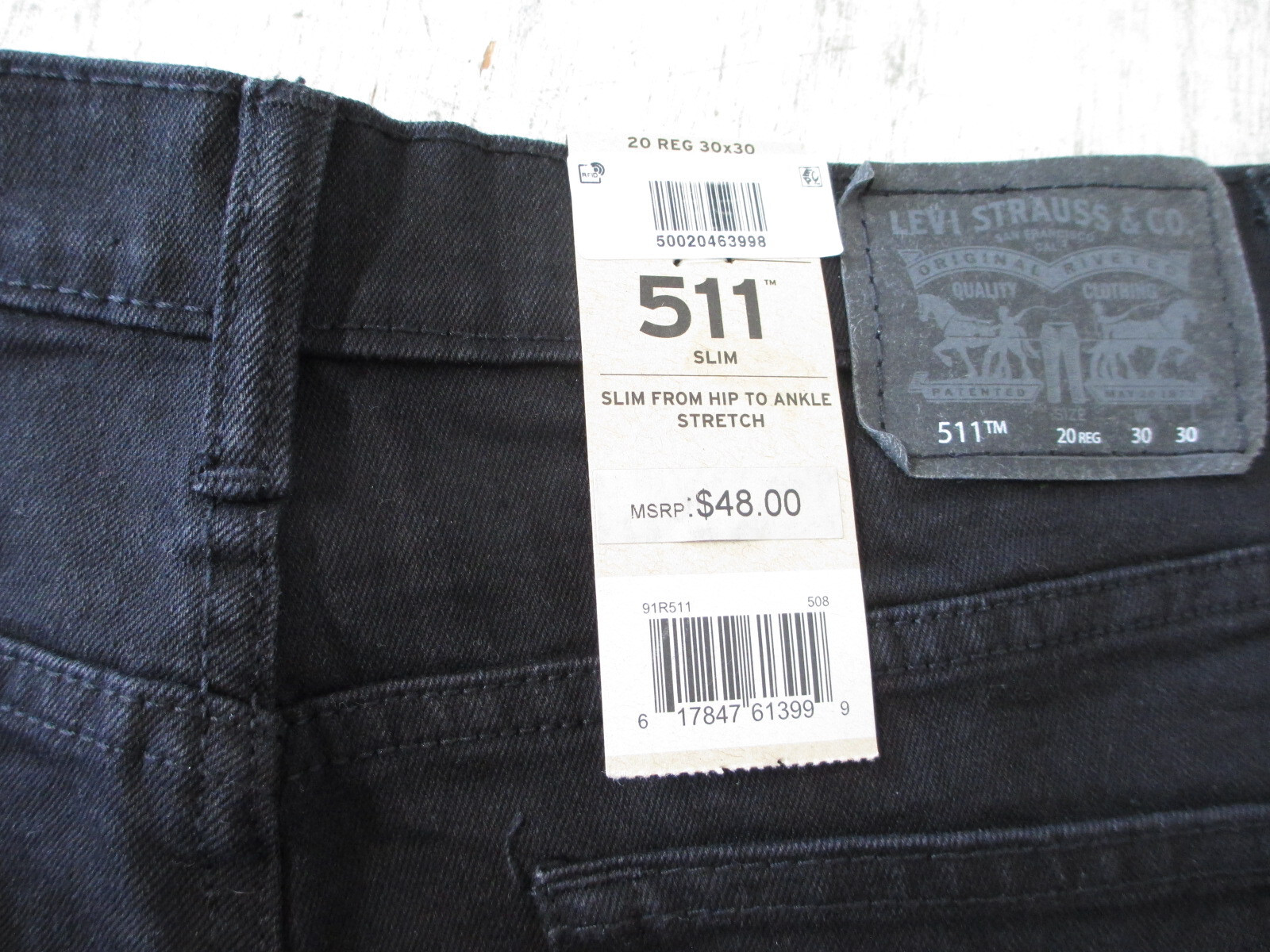 Levi's Boys Black 511 Slim Fit Stretch Denim Jeans Size 20 Reg 30 x 30 - NEW