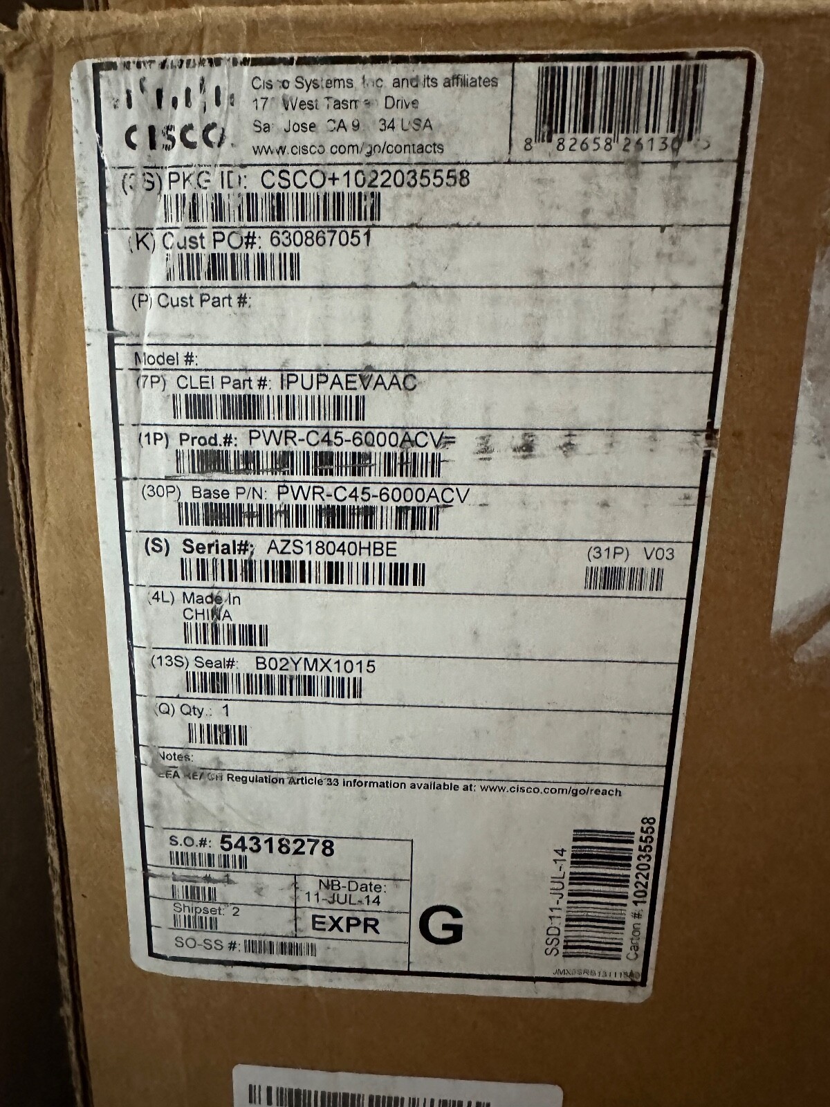 MPN: PWR-C45-6000ACV=