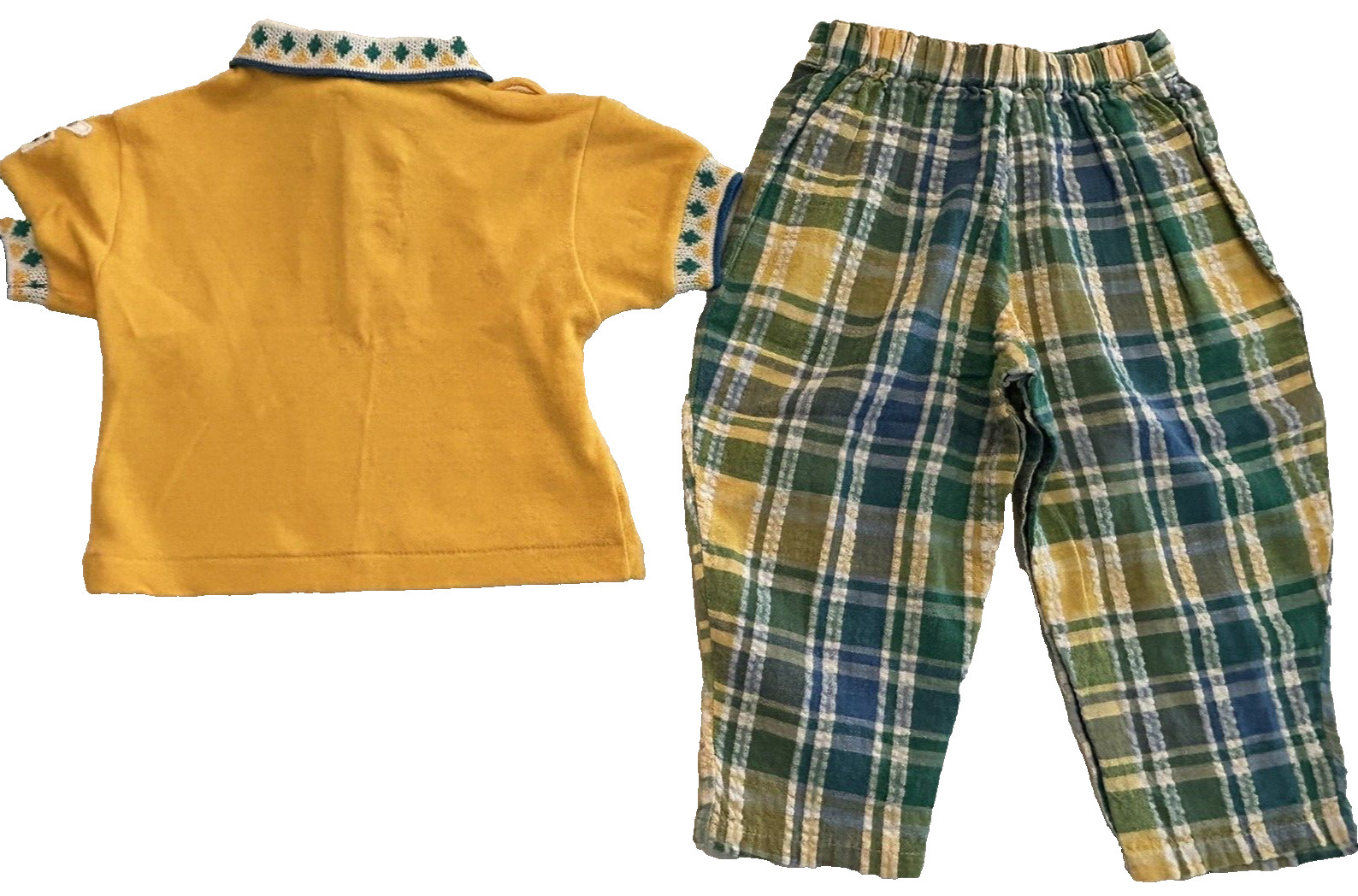 как выглядит VTG Boys 12 month 2 Piece GOLF Short Set Yellow/Green/Plaid фото