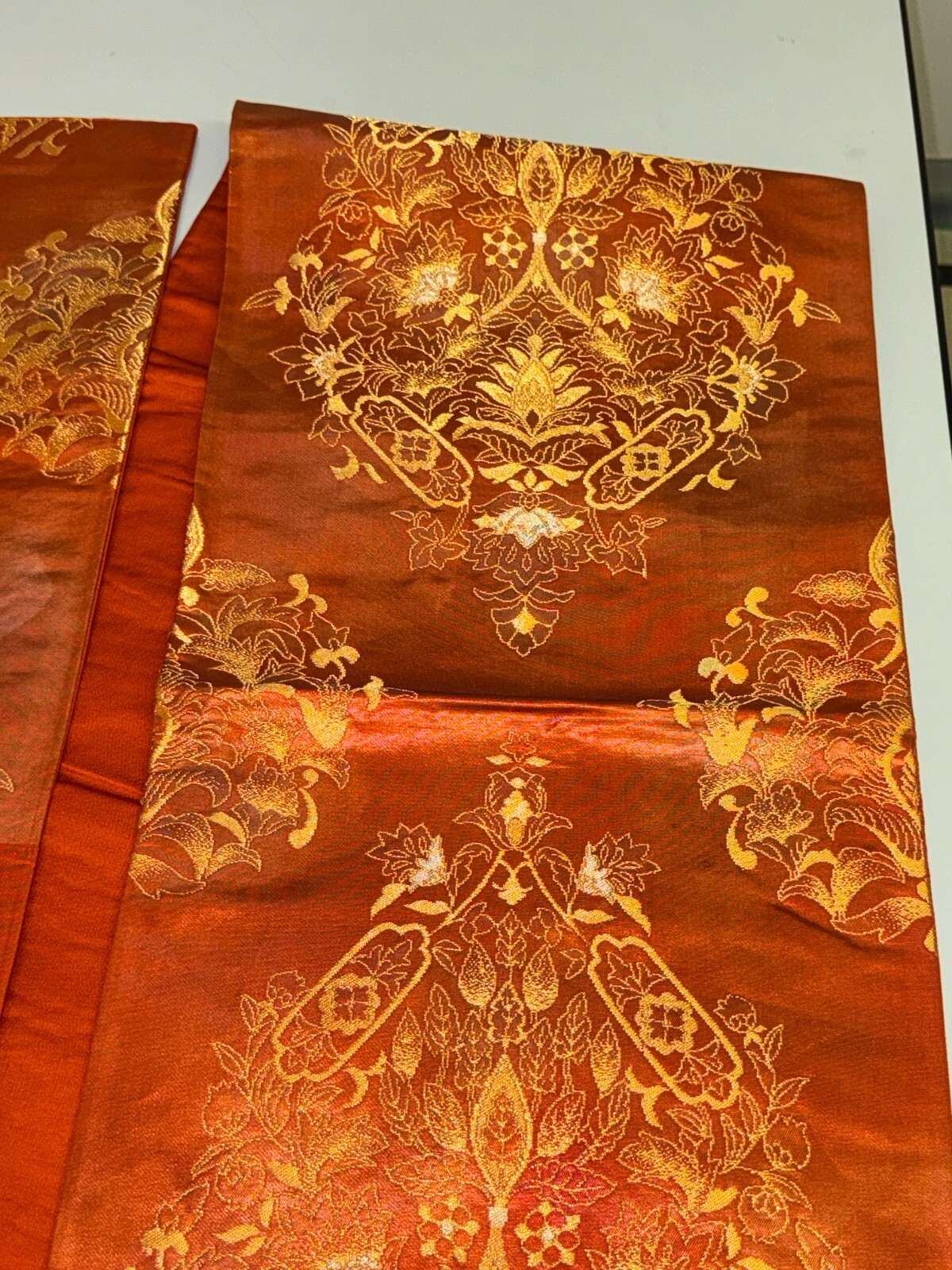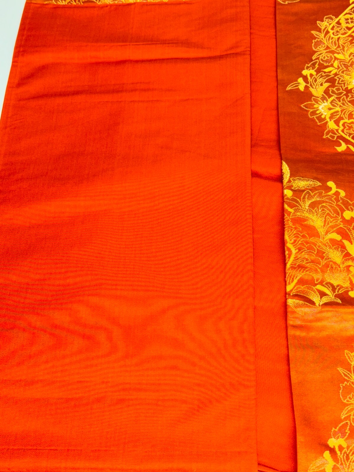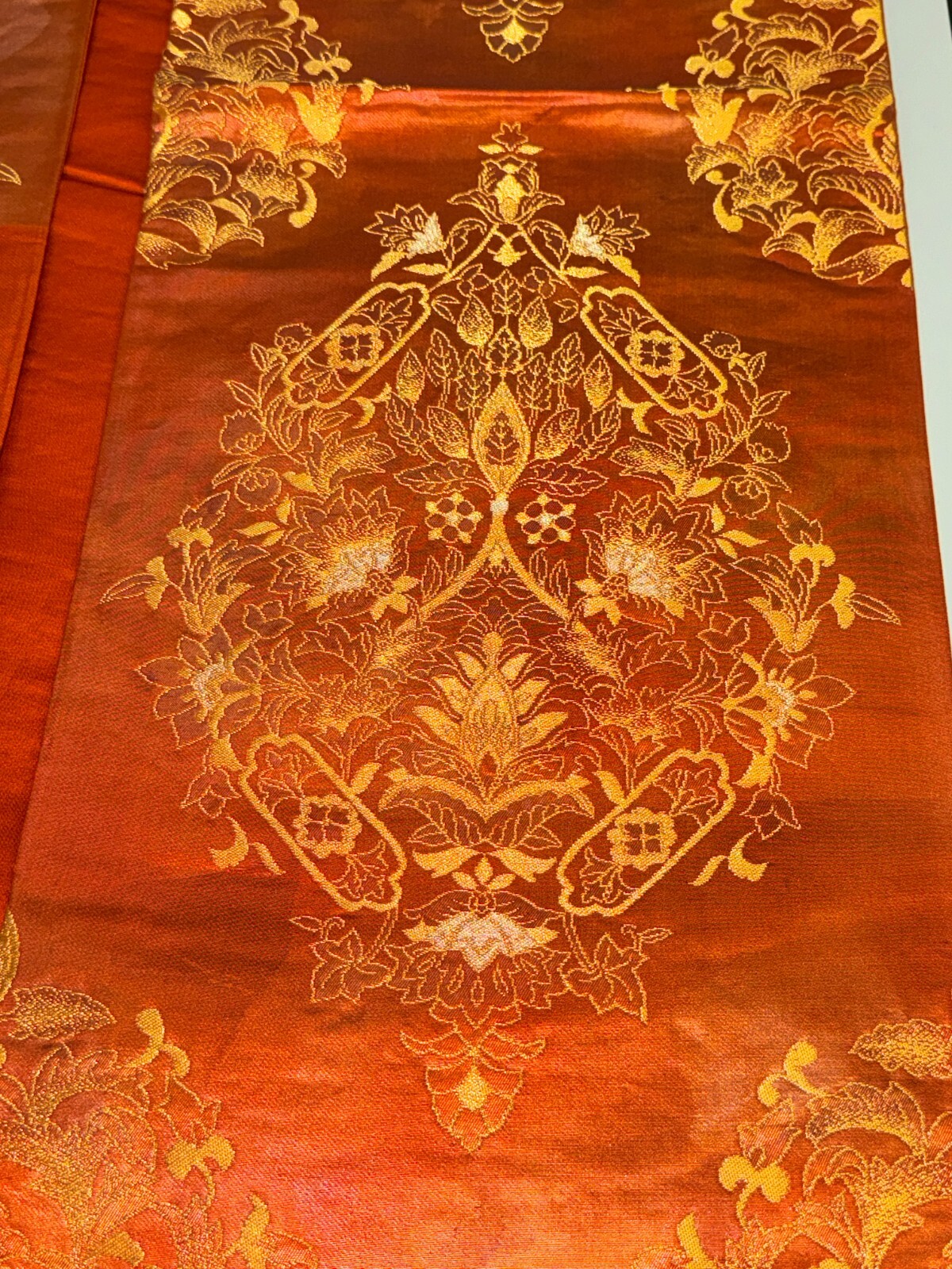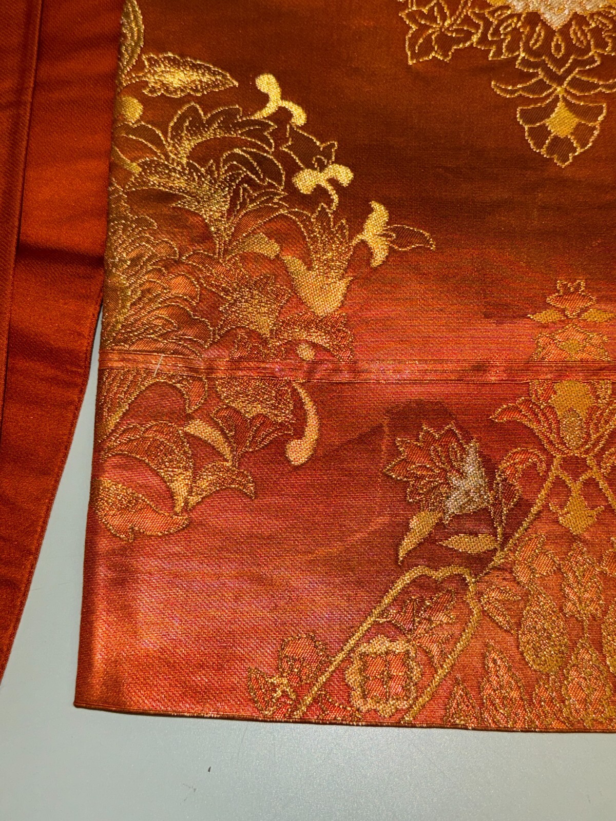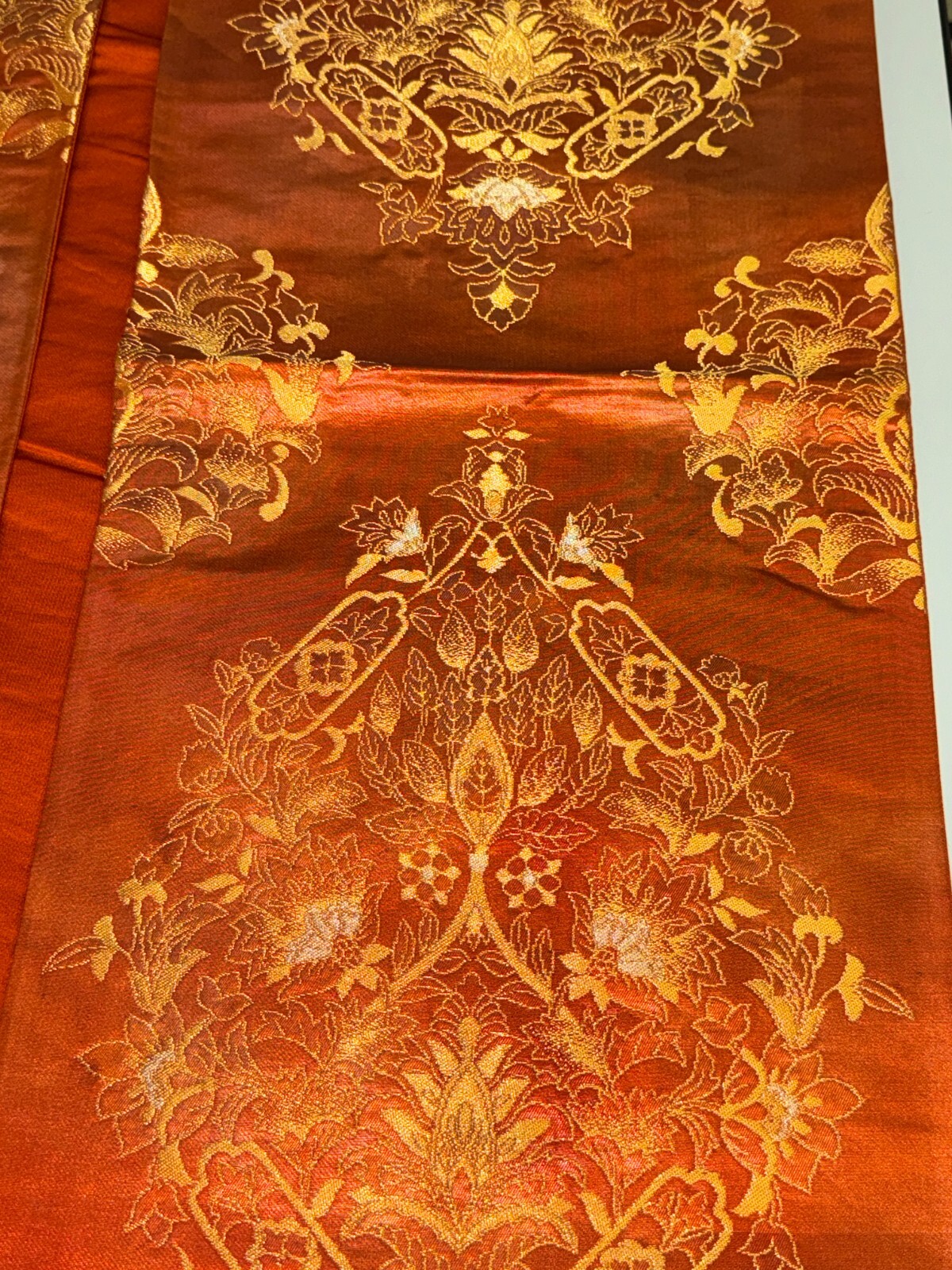 как выглядит Japanese Vintage Kimono Fukuro Obi silk orange expensive embroidery 164.5x12.2in фото